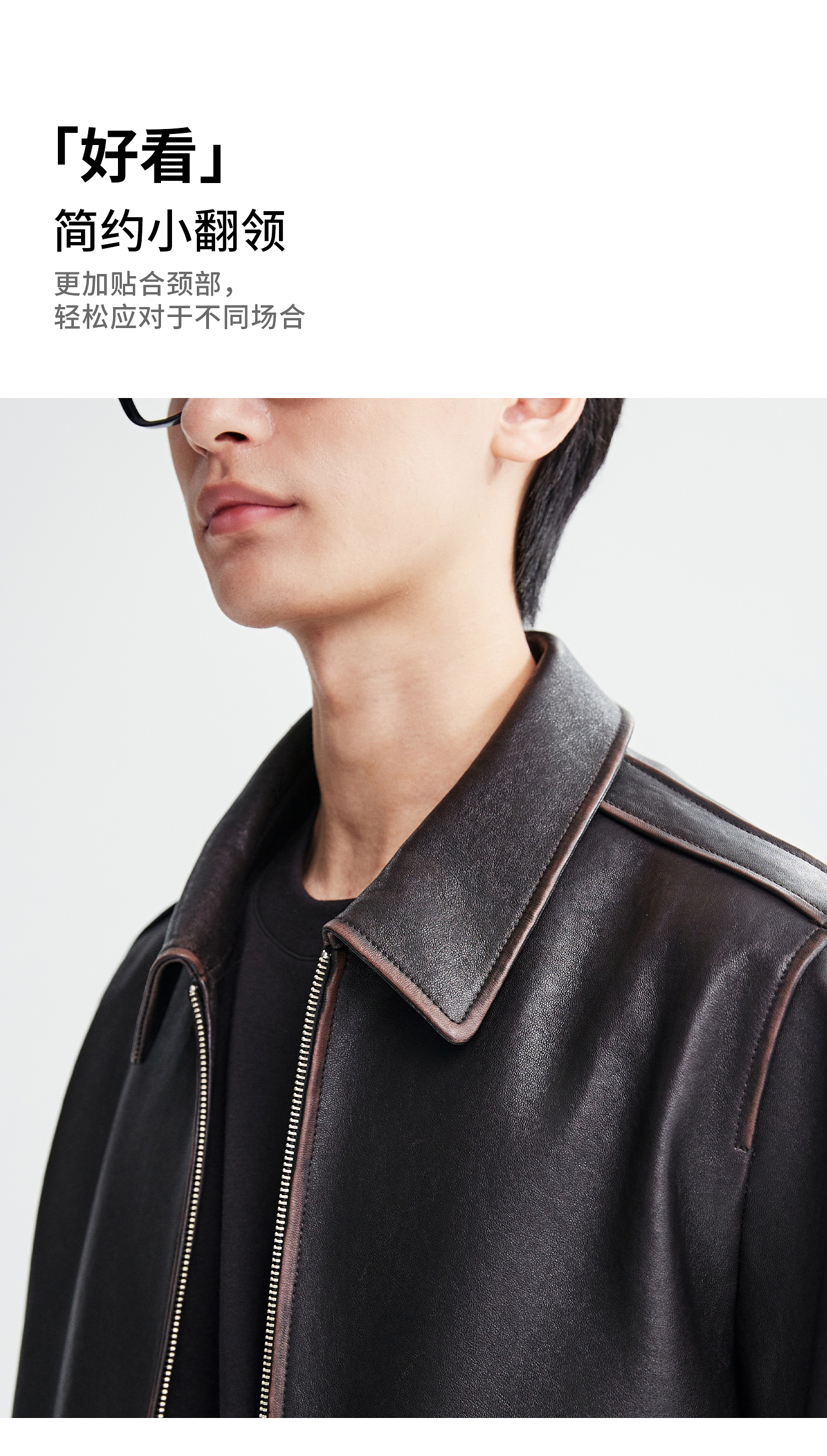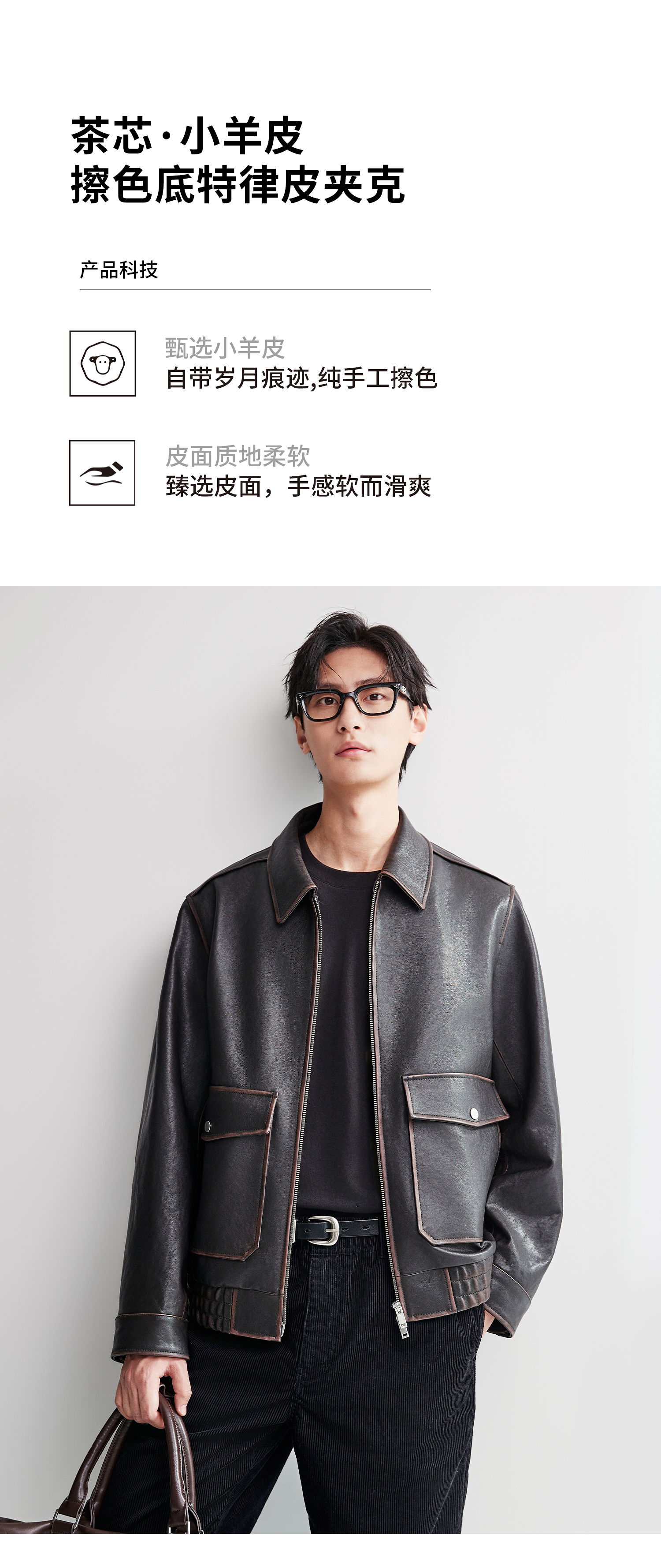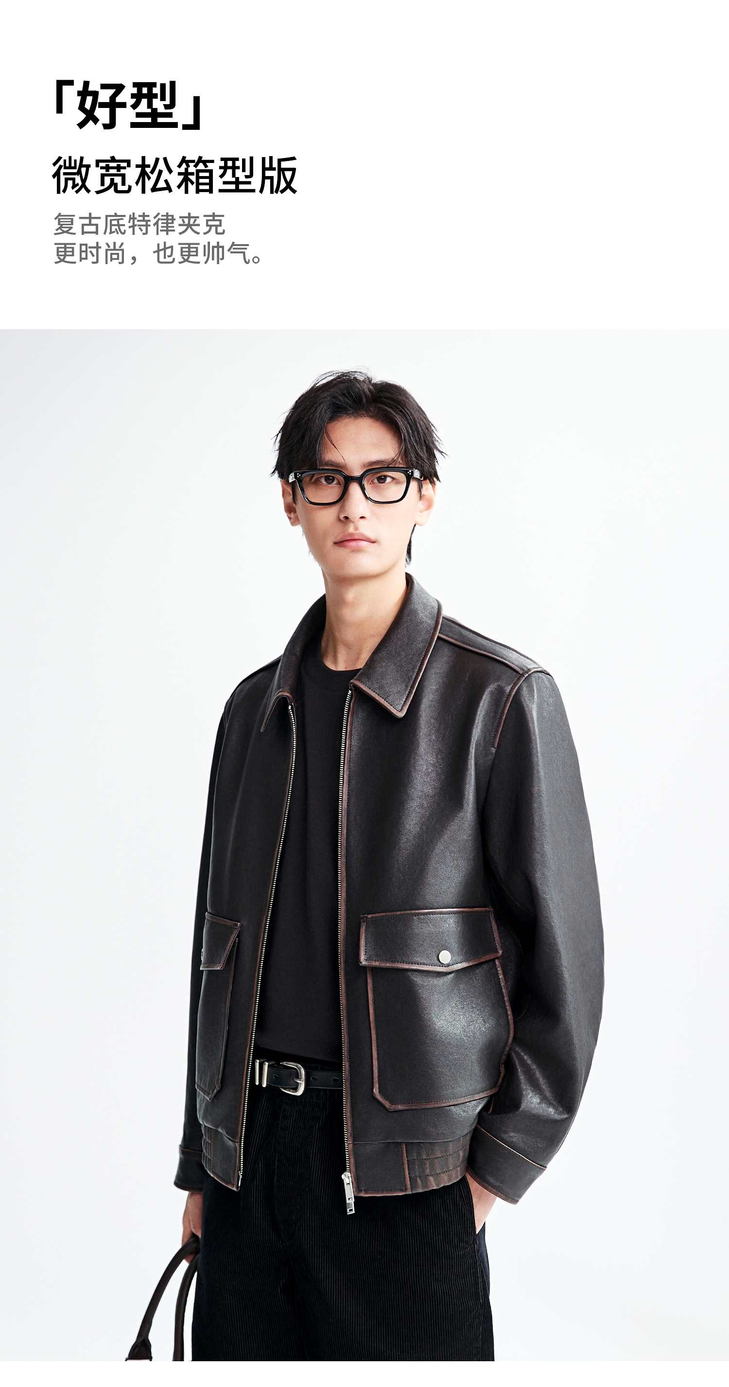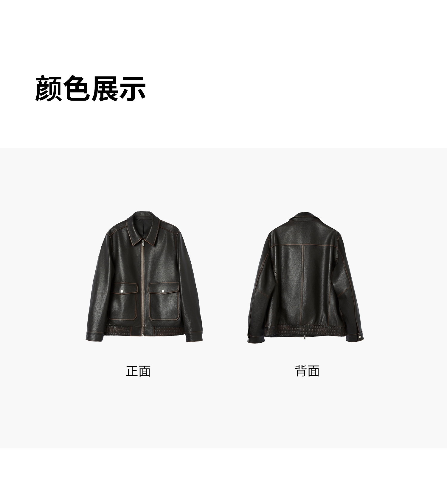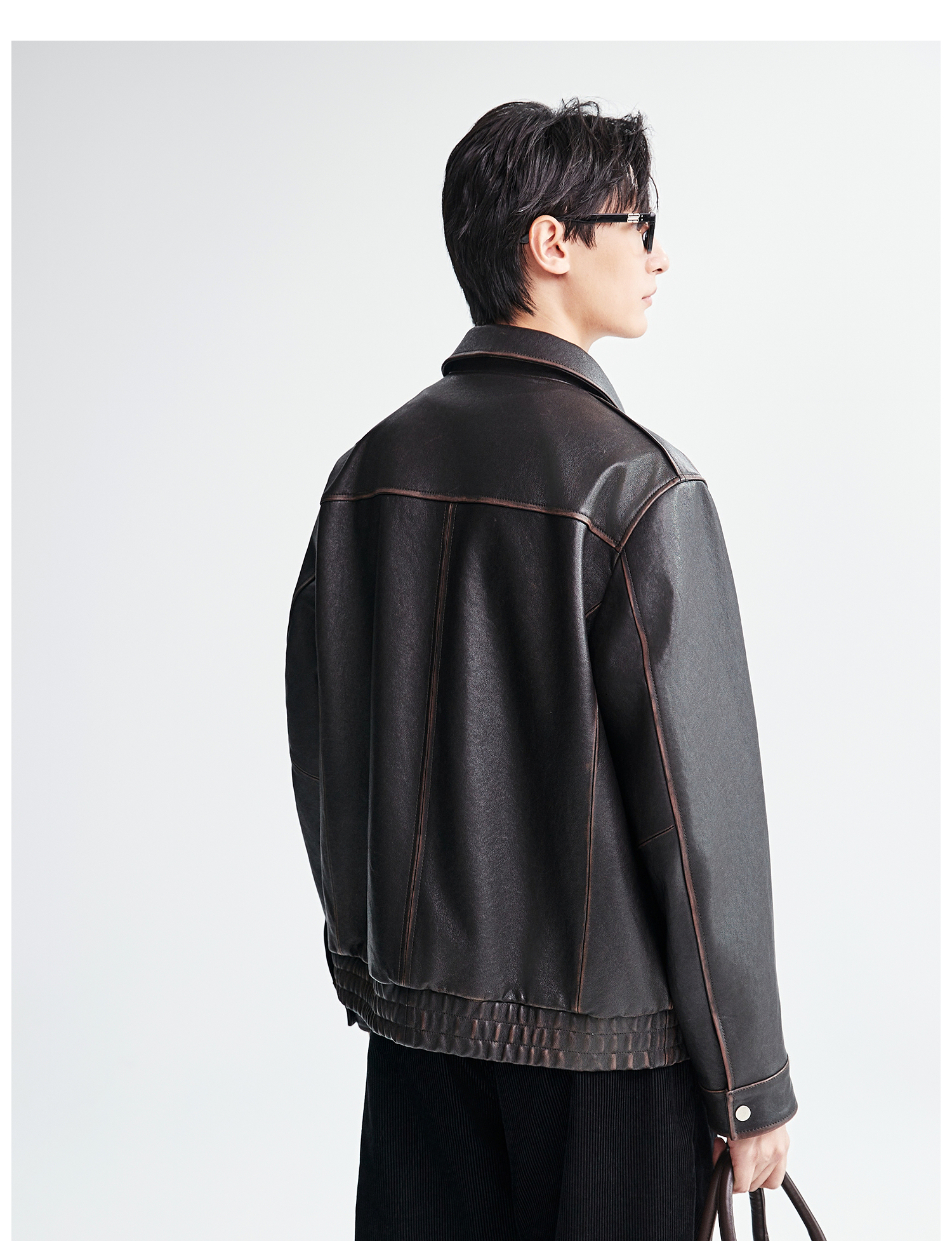棉仓366827002-7系复古老钱风擦色底特律皮夹克男 秋冬绵羊皮翻领真皮皮衣