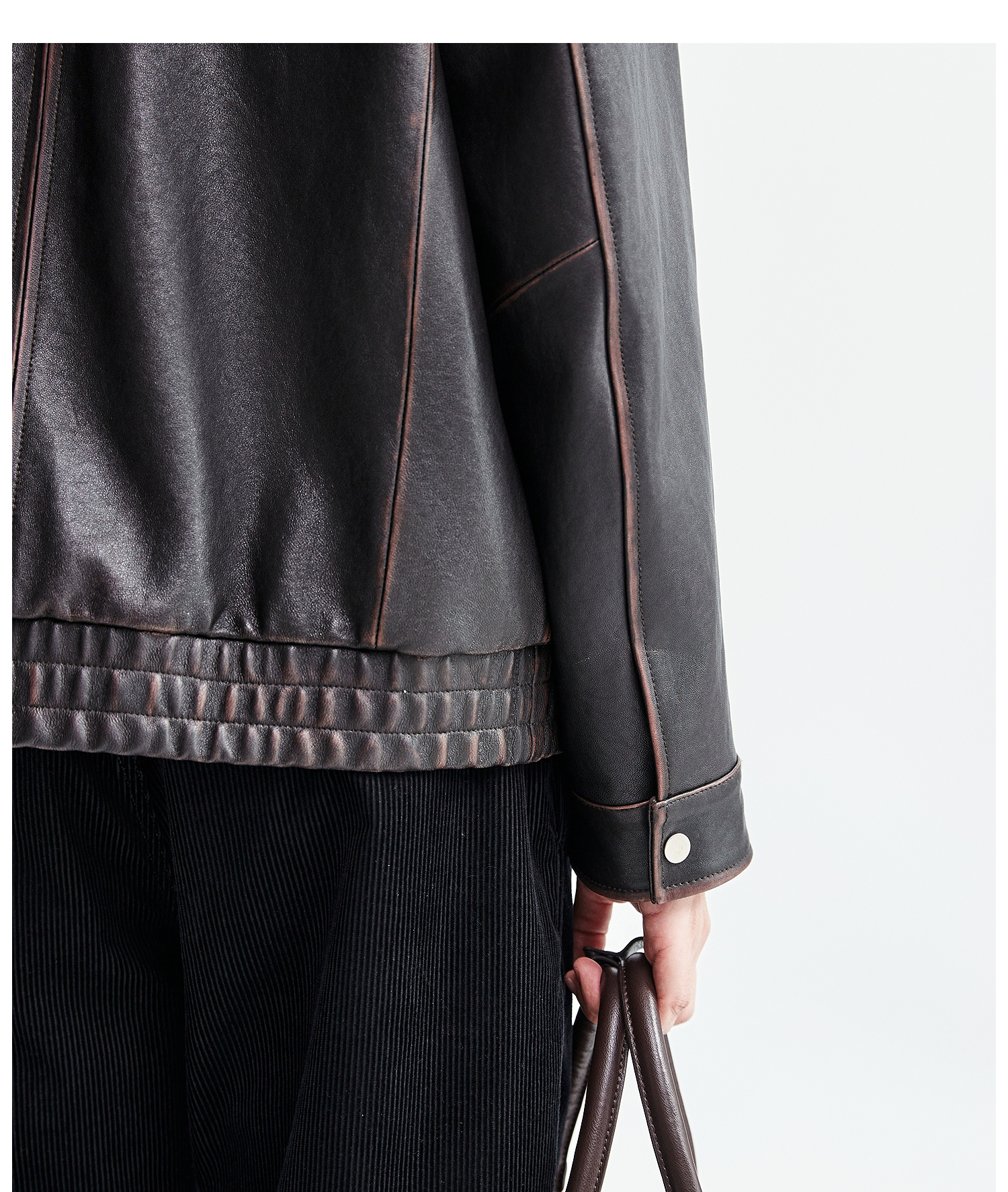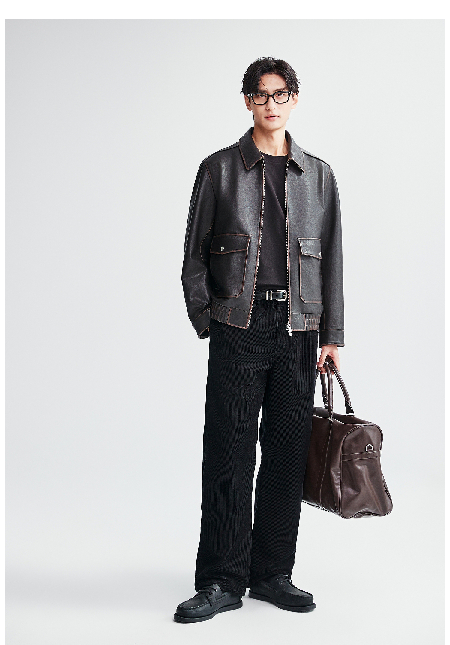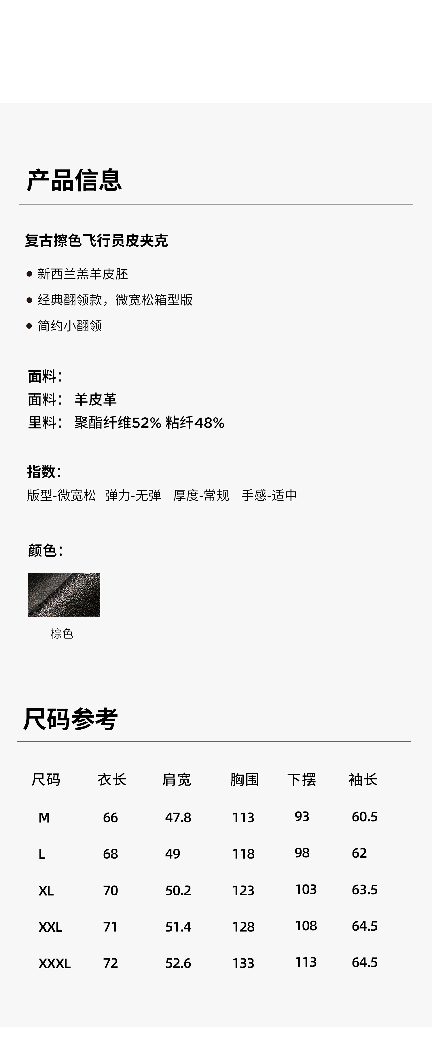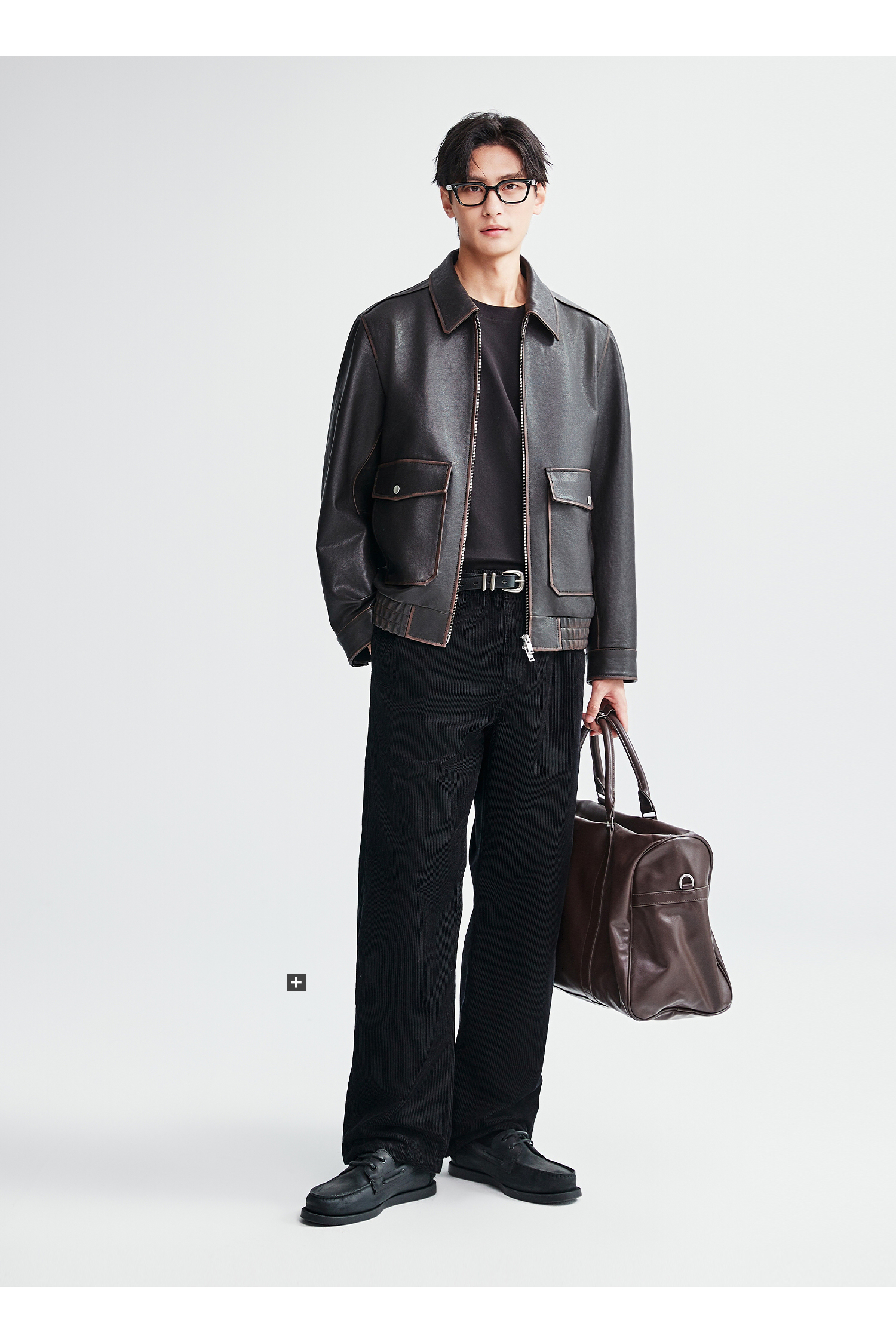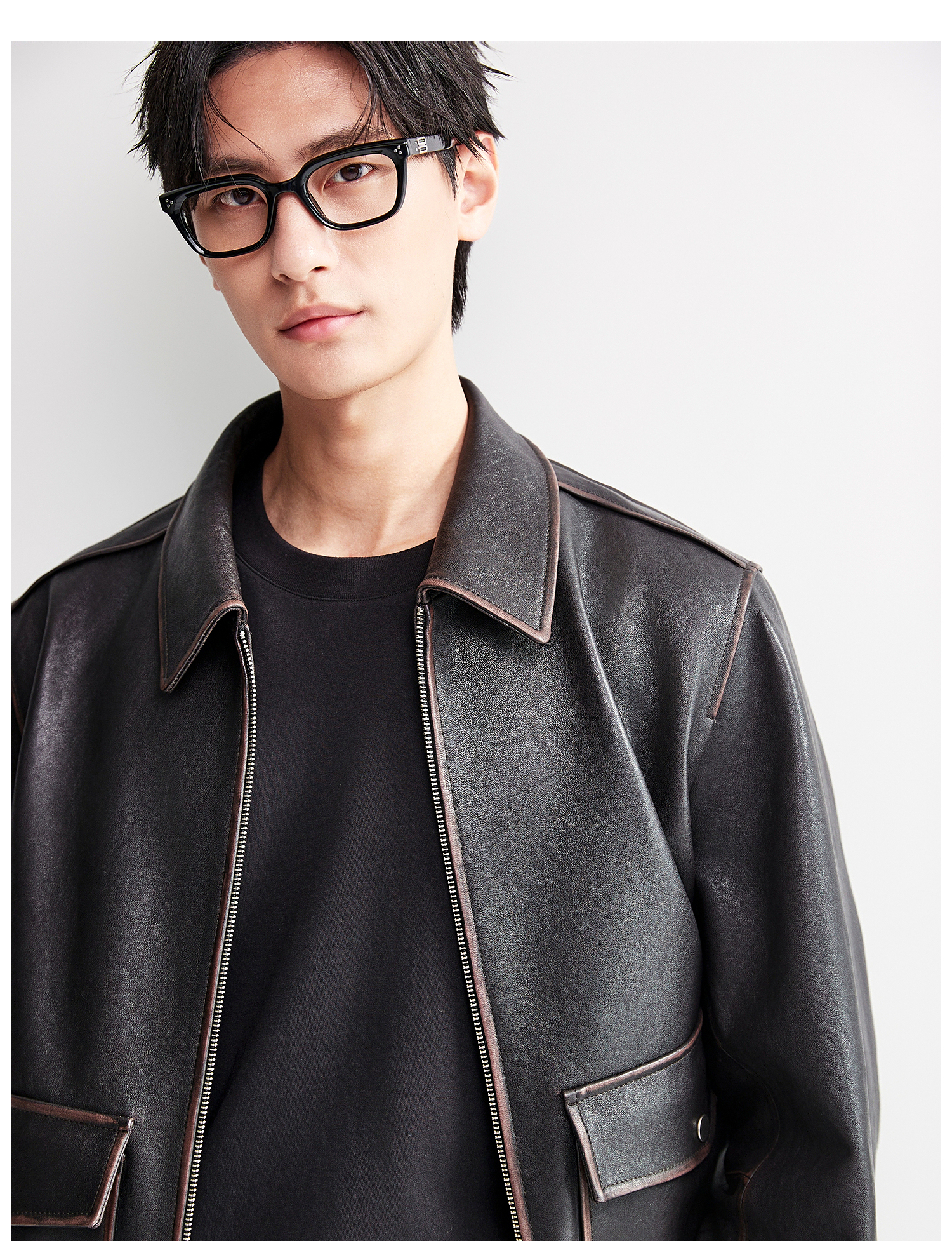 棉仓366827002-7系复古老钱风擦色底特律皮夹克男 秋冬绵羊皮翻领真皮皮衣