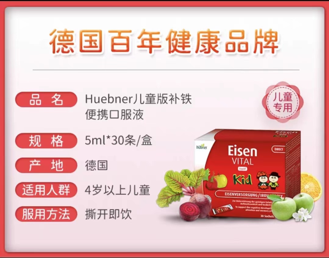 德国Eisen便捷红铁剂 5ml*30条/盒(儿童)