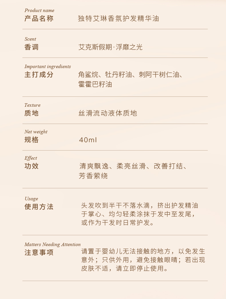 【春上新】9楼母婴生活馆 独特艾琳香氛护发精油柔顺烫染发后修护丝滑柔顺留香女护发精华油 吊牌价:89元 活动价:69元