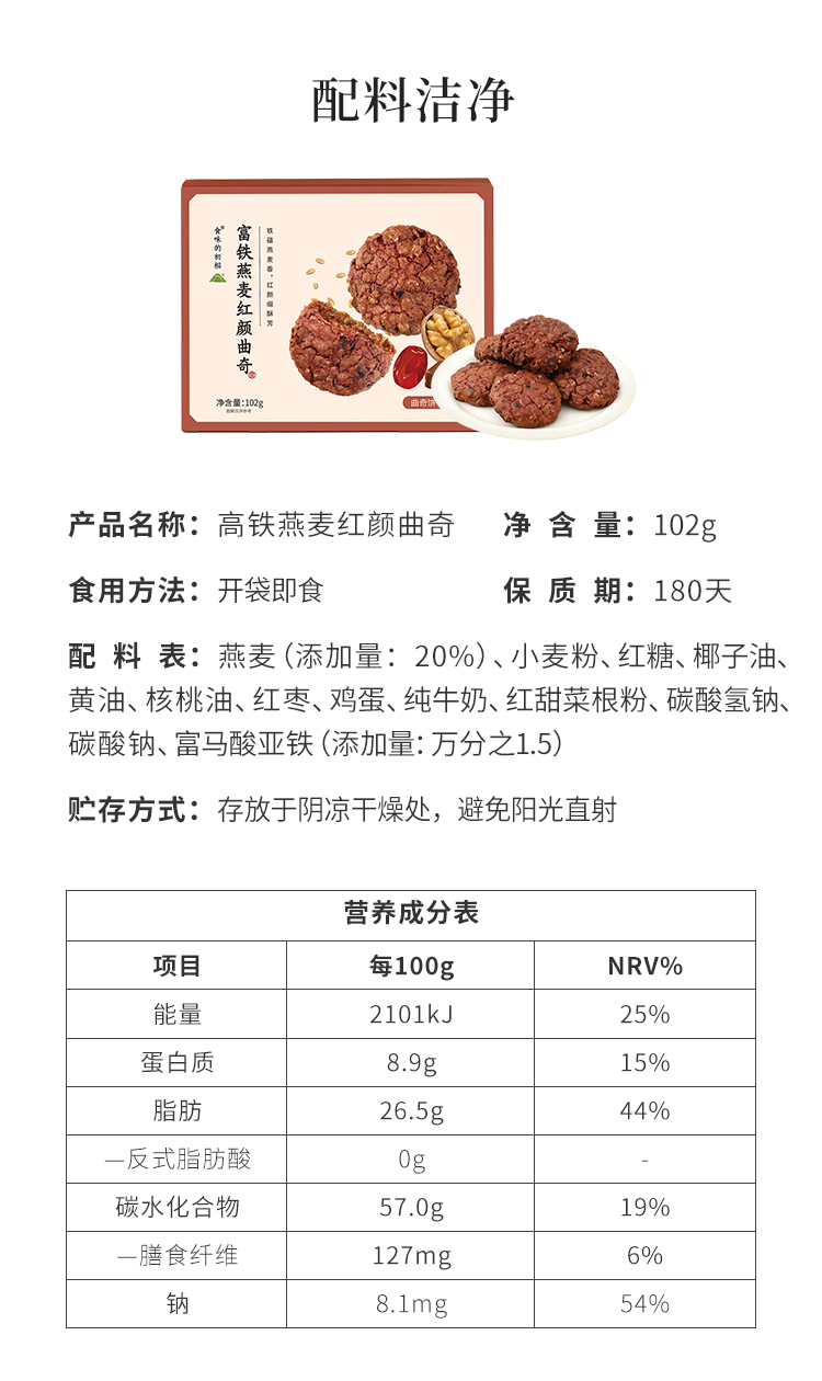 【米马团购】食味的初相 富铁燕麦红颜曲奇102g*3盒