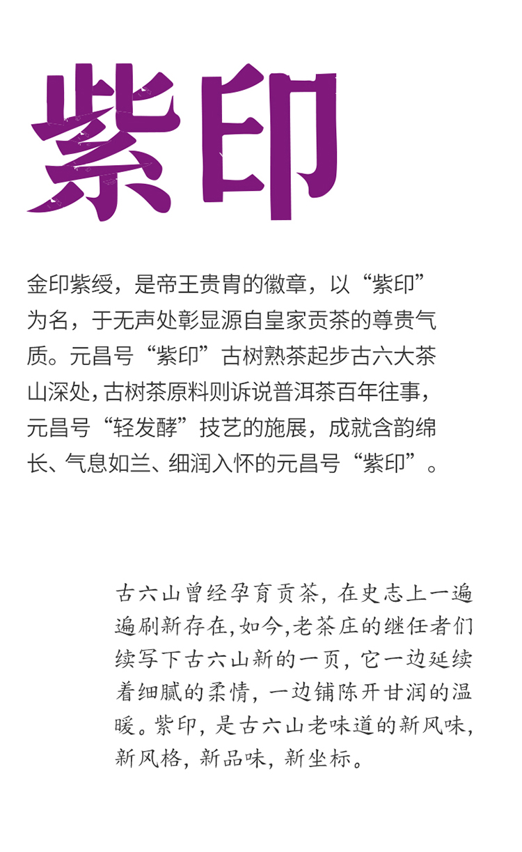 【元昌号】印级茶系列高端典藏紫印2003年古六山古树357g熟茶