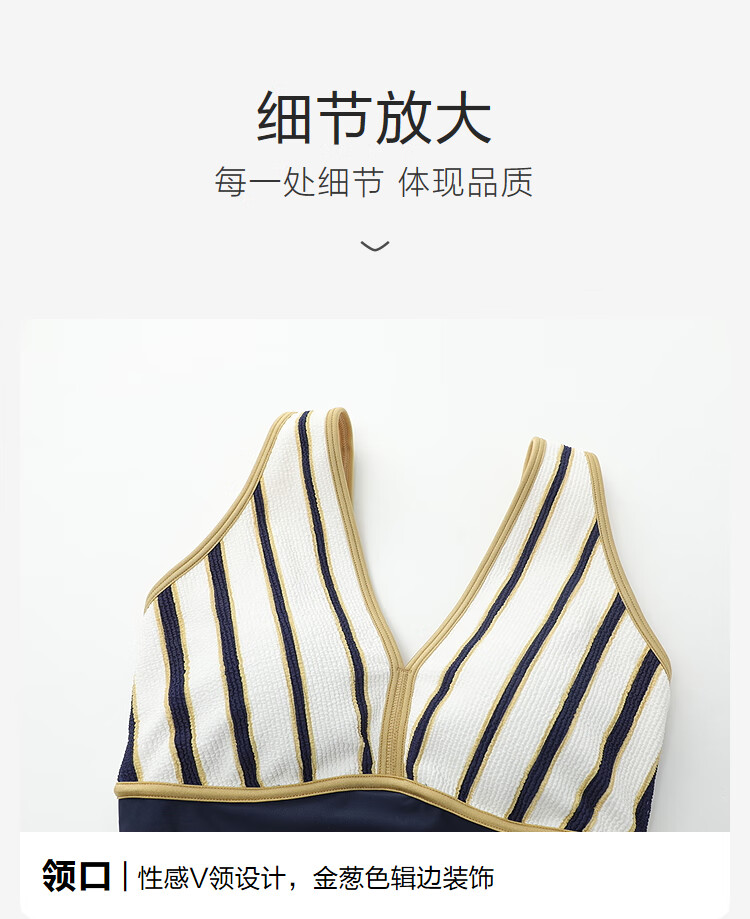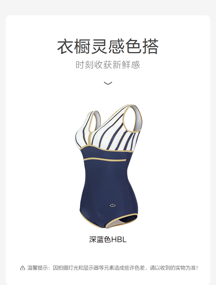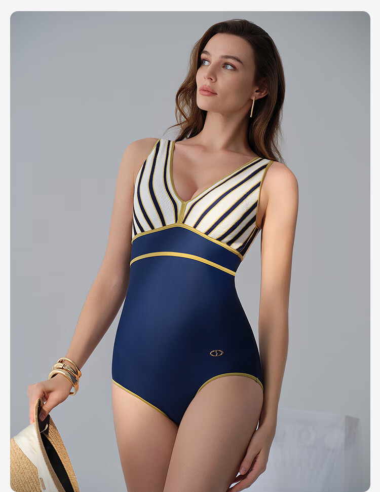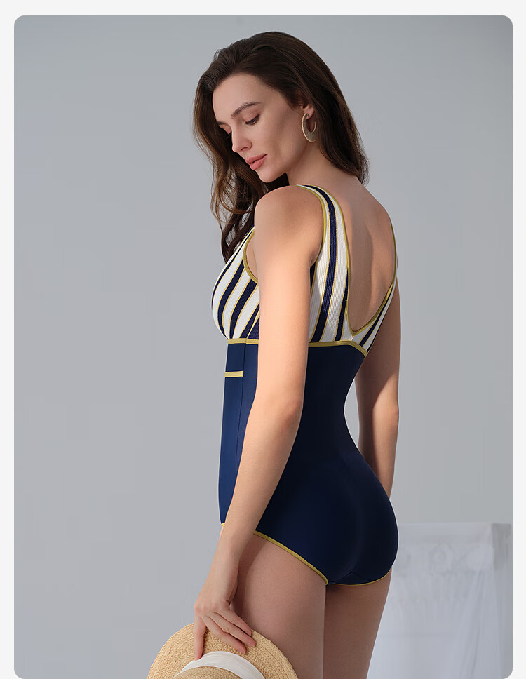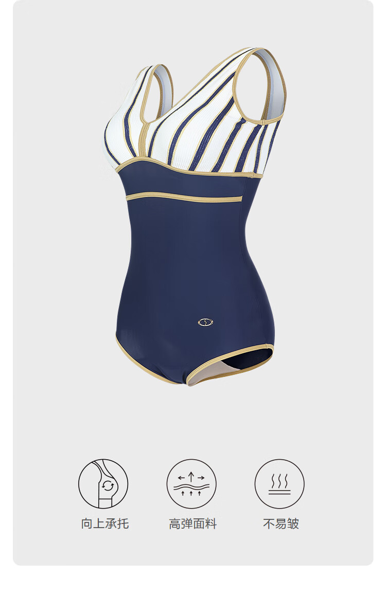 【3F】安莉芳条纹海军风女士连体泳衣ES00264 深蓝色