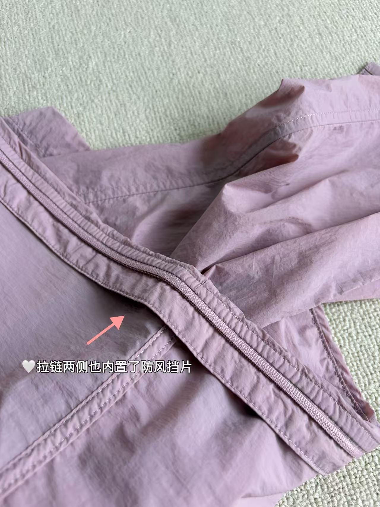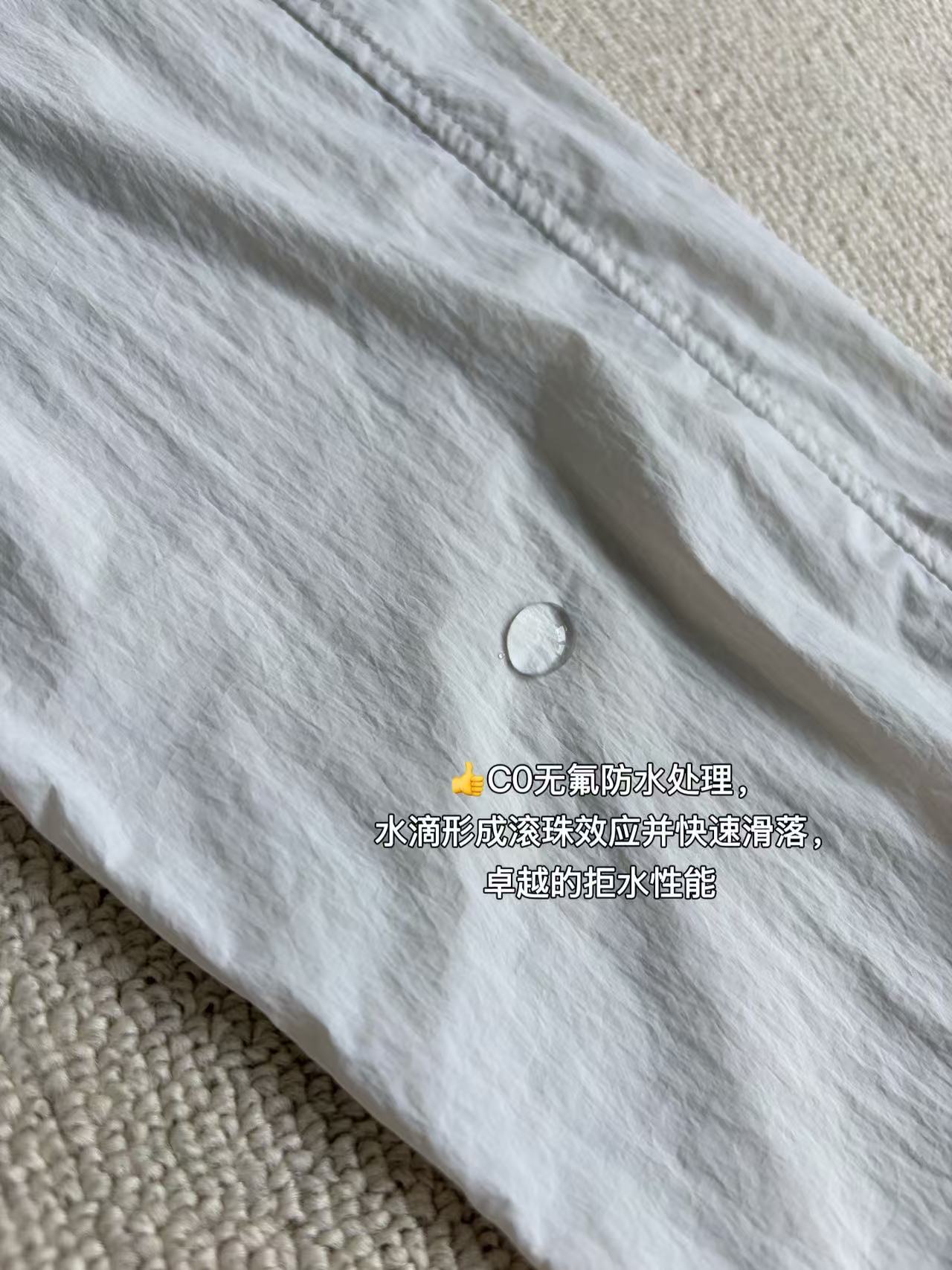 ✅又轻又韧,质地轻盈透气,超级柔软,防水防晒还能轻微防风,表面呈现出独特的微皱效果。