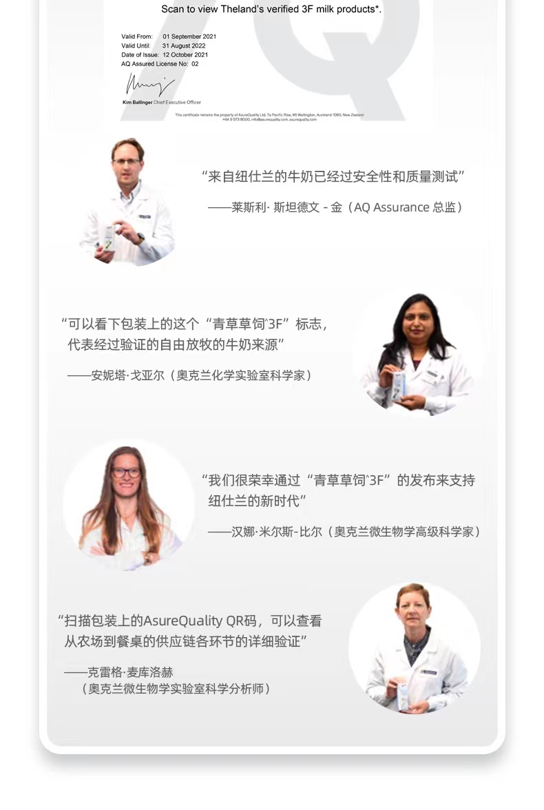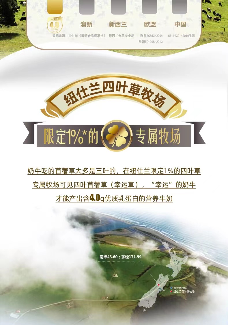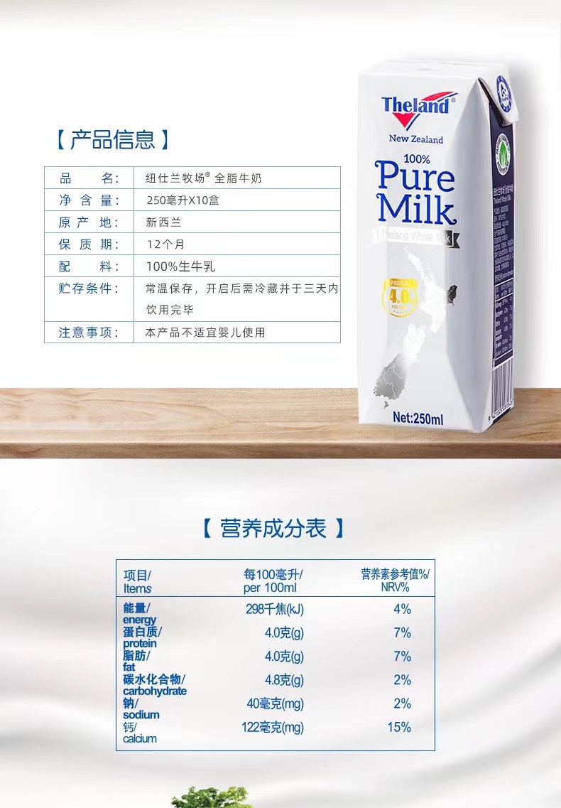 纽仕兰牛奶 新西兰进口 4.0g蛋白全脂低脂牛奶