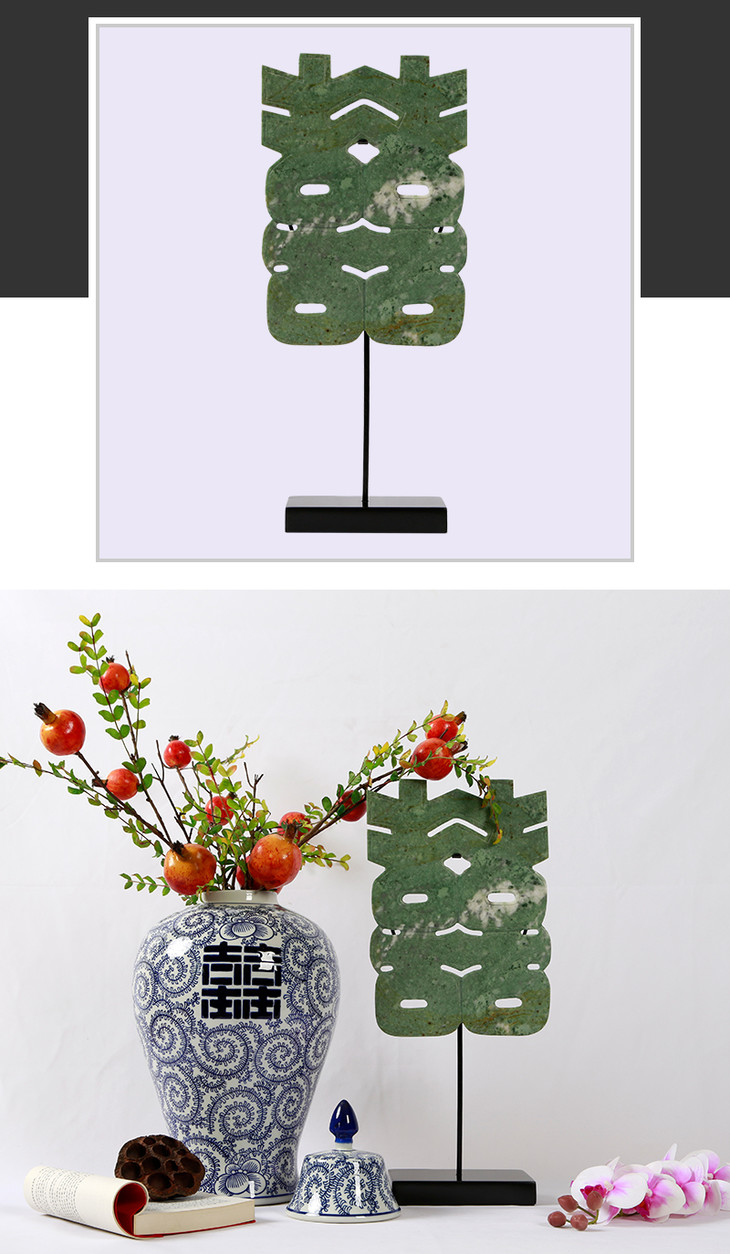 新品婚嫁双喜字婚房玉石复古怀旧创意客厅书房卧室手工材质摆件