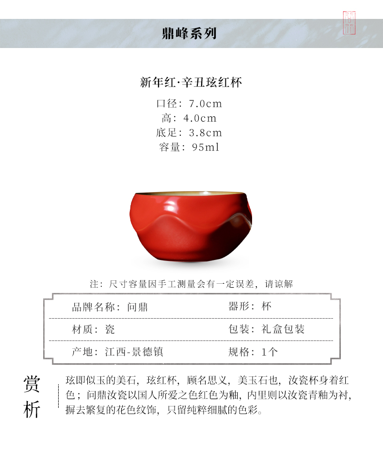 问鼎汝瓷鼎峰系列辛丑新年红玹红杯