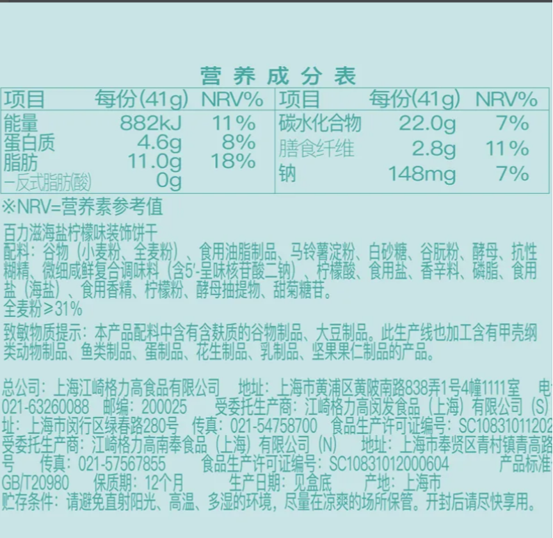 格力高百力滋 海盐柠檬味 装饰饼干41g