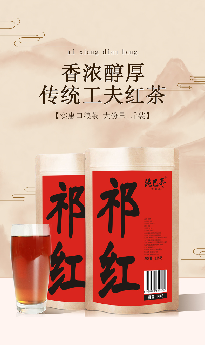 泥巴哥高香祁红口粮茶500g大份量工夫红茶叶