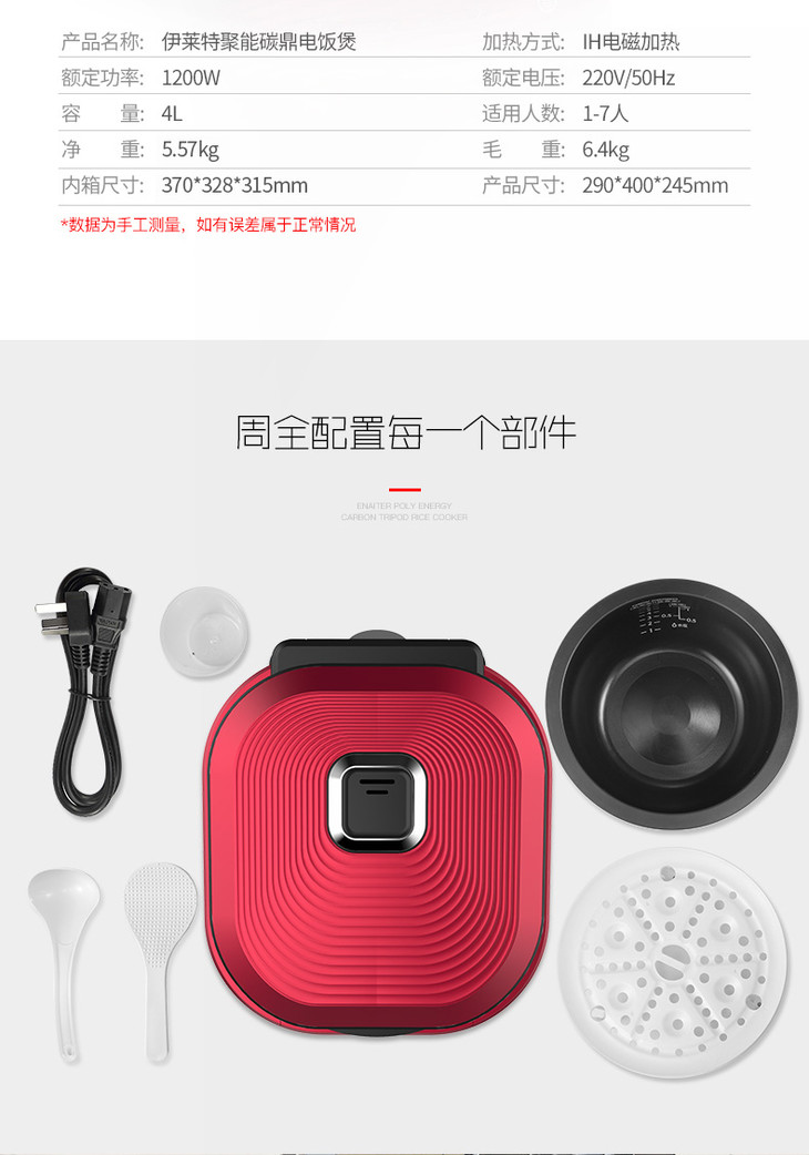 伊莱特聚能碳鼎IH电磁电饭煲 活化糙米键 EB-ITFD40R3 红色