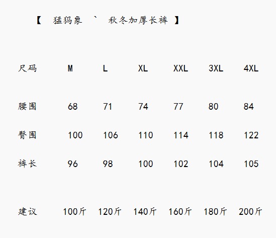 /猛犸象 经典设计 男士秋冬加绒卫裤。