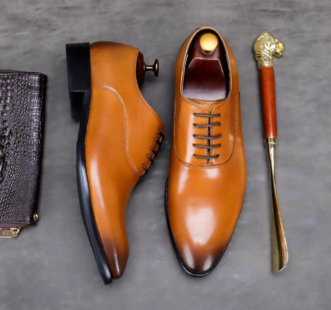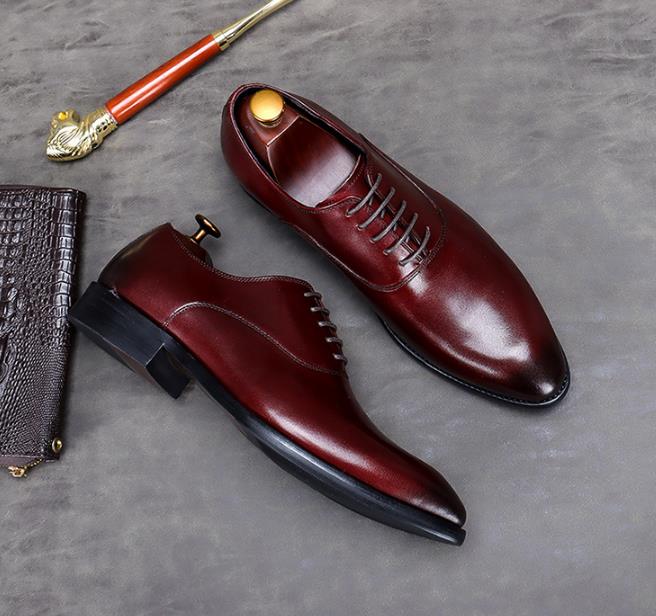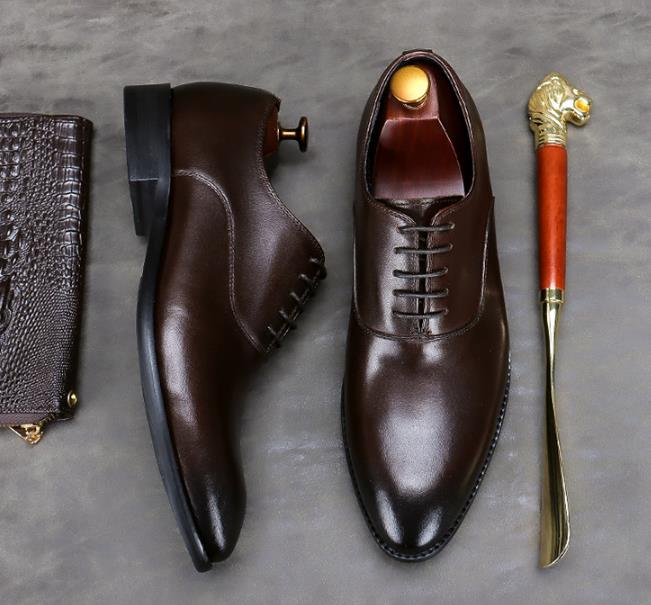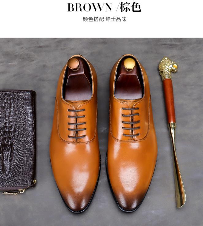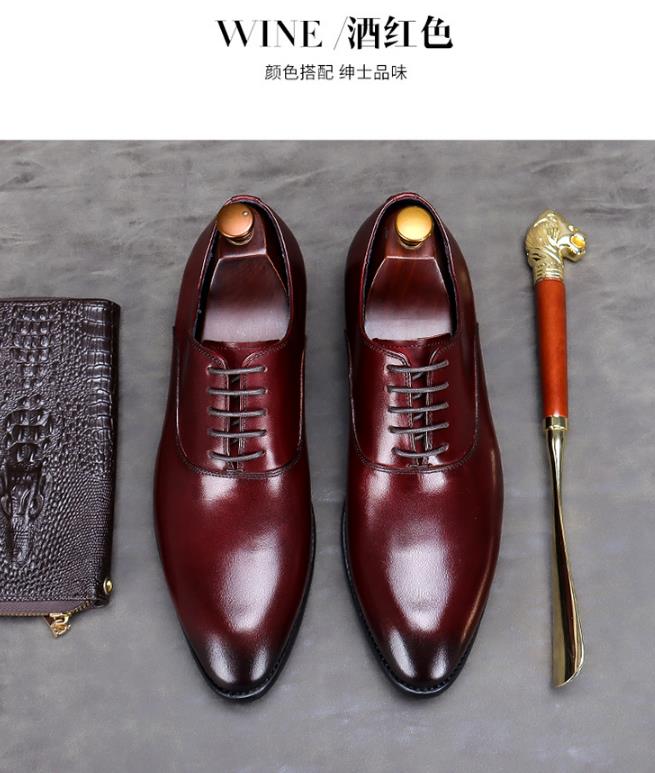 【服饰鞋包】头层牛皮男士商务皮鞋大码系带低帮牛皮手工男式正装单鞋