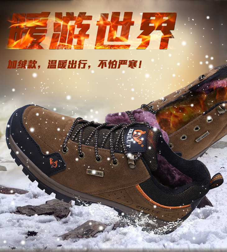 【运动鞋】春秋冬棉鞋户外登山男鞋低帮运动鞋徒步鞋男旅游鞋反绒加绒