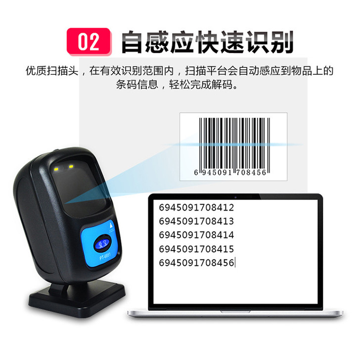 【扫描仪】*爱宝PT6851扫描平台二维码收款超市收银专用扫描手机条码扫码器