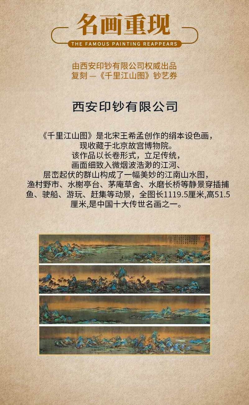 【礼赠】千里江山纪念券·西安印钞·挂画·可挂墙