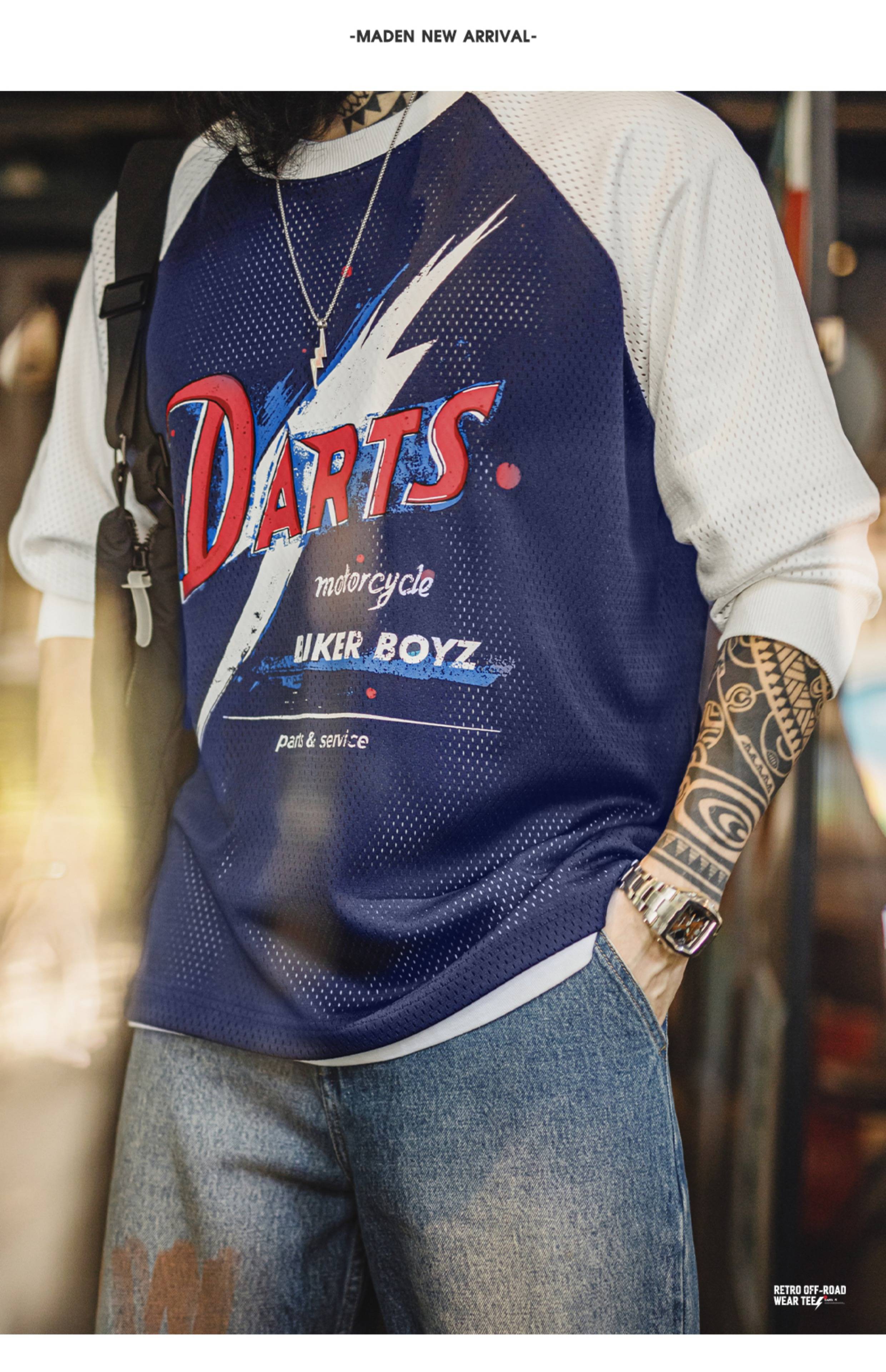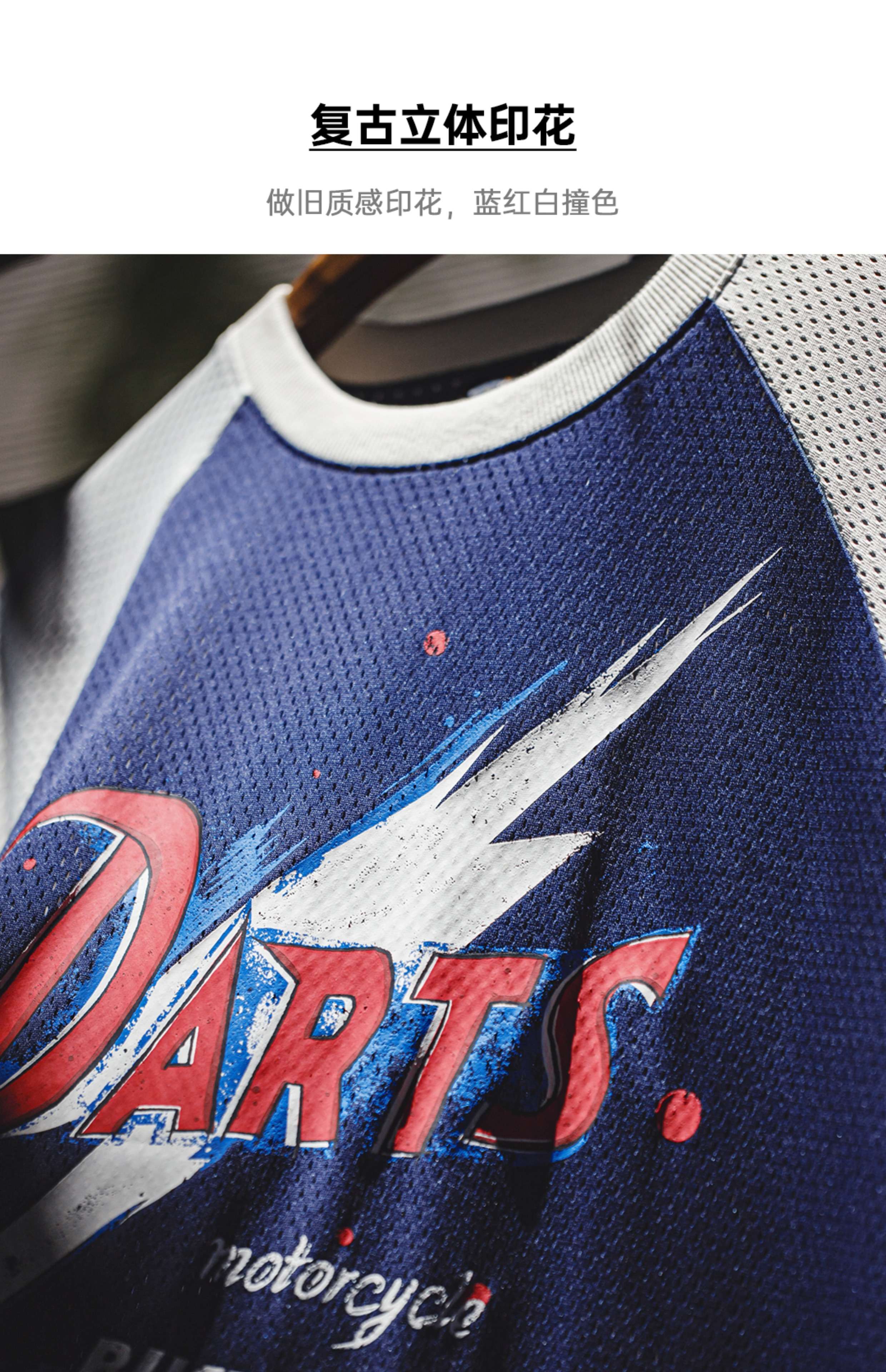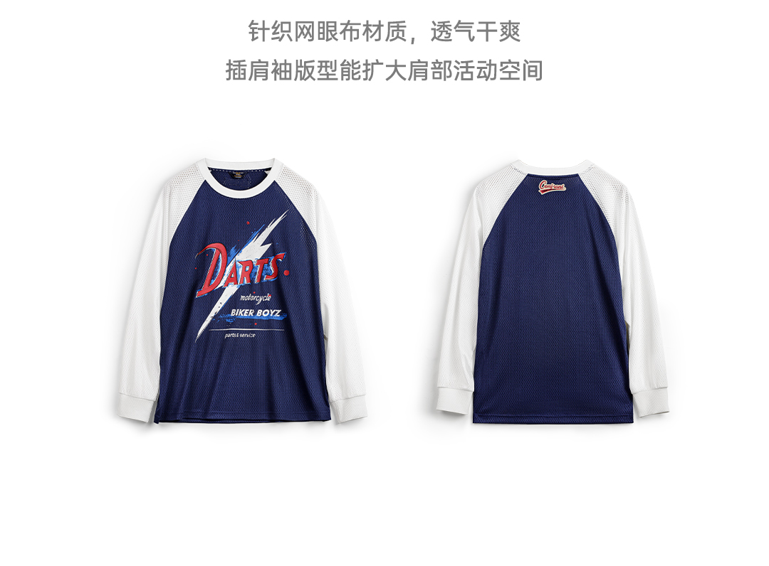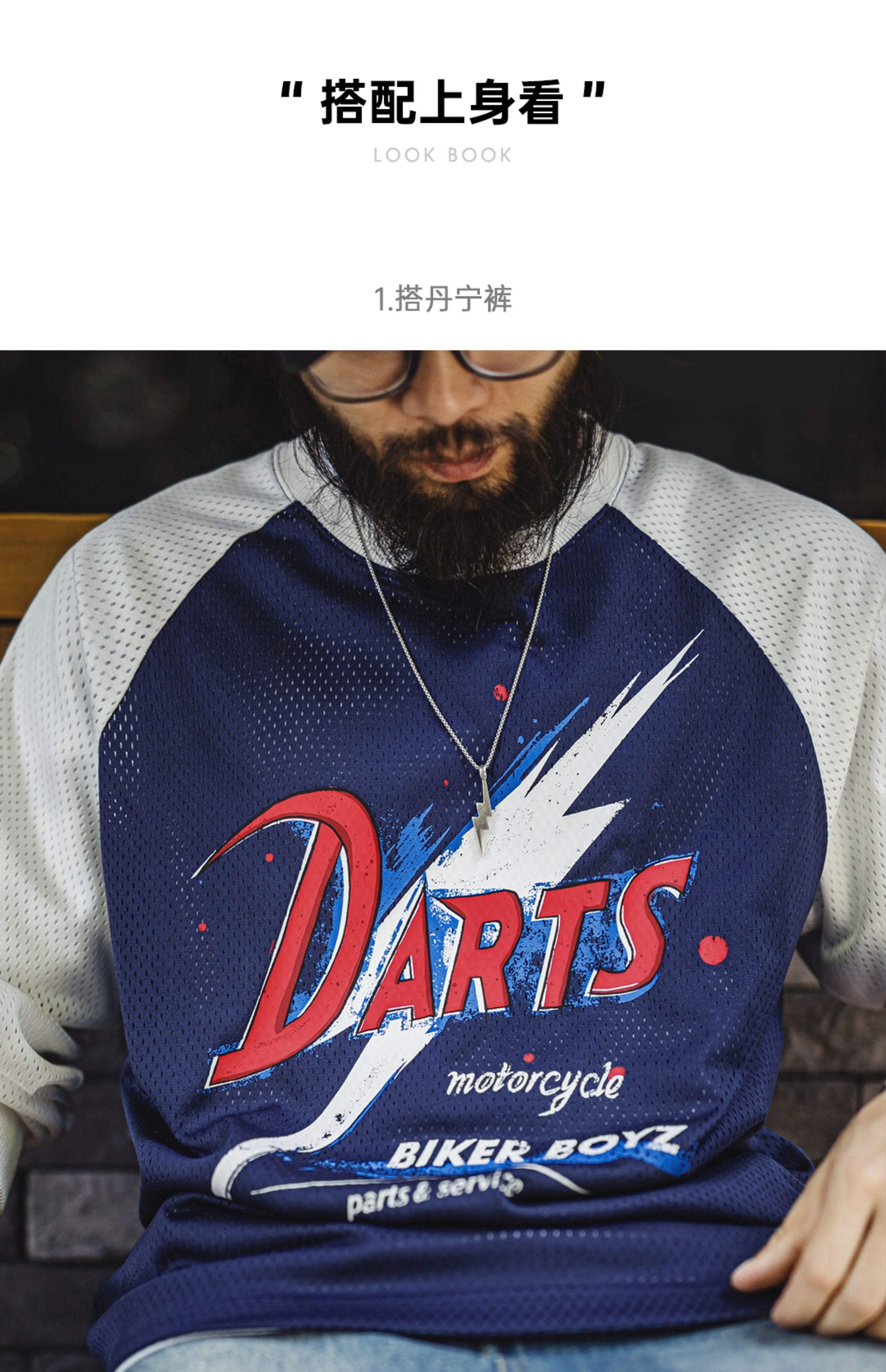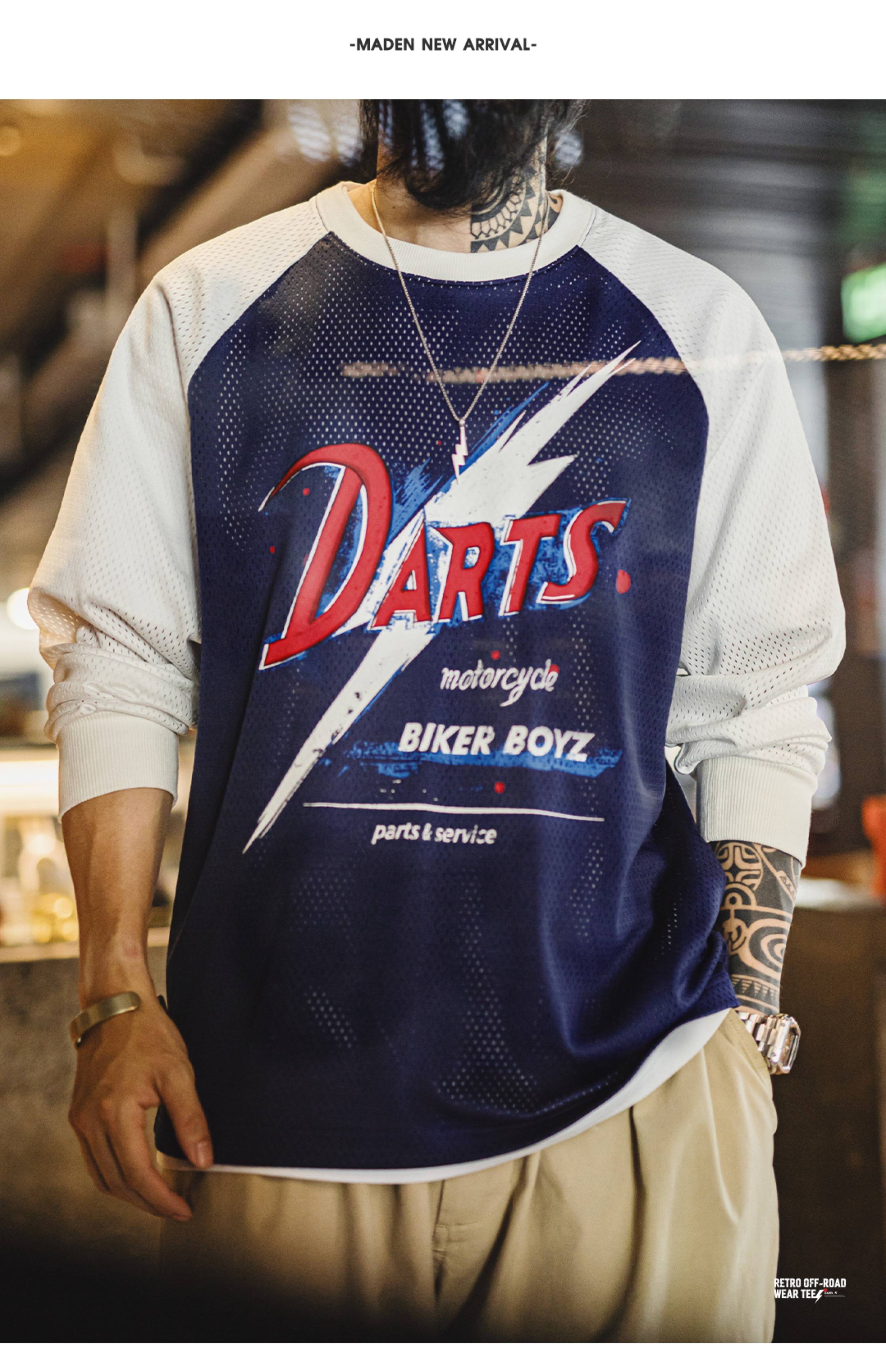 马登工装美式印花长袖T恤镂空撞色针织插肩袖垂感套头卫衣男夏秋