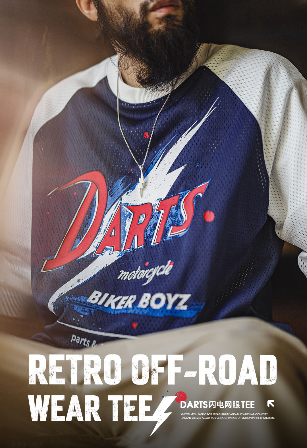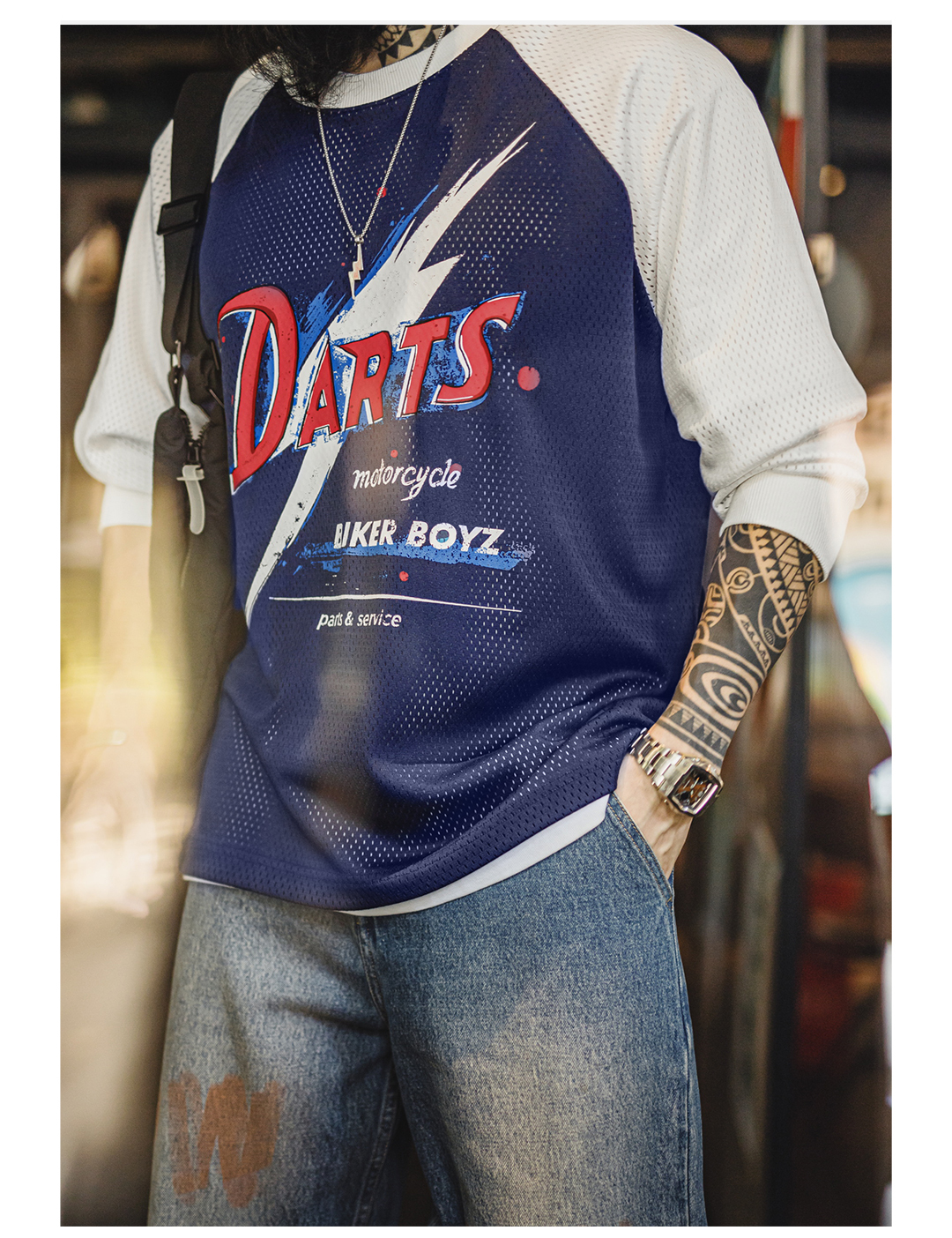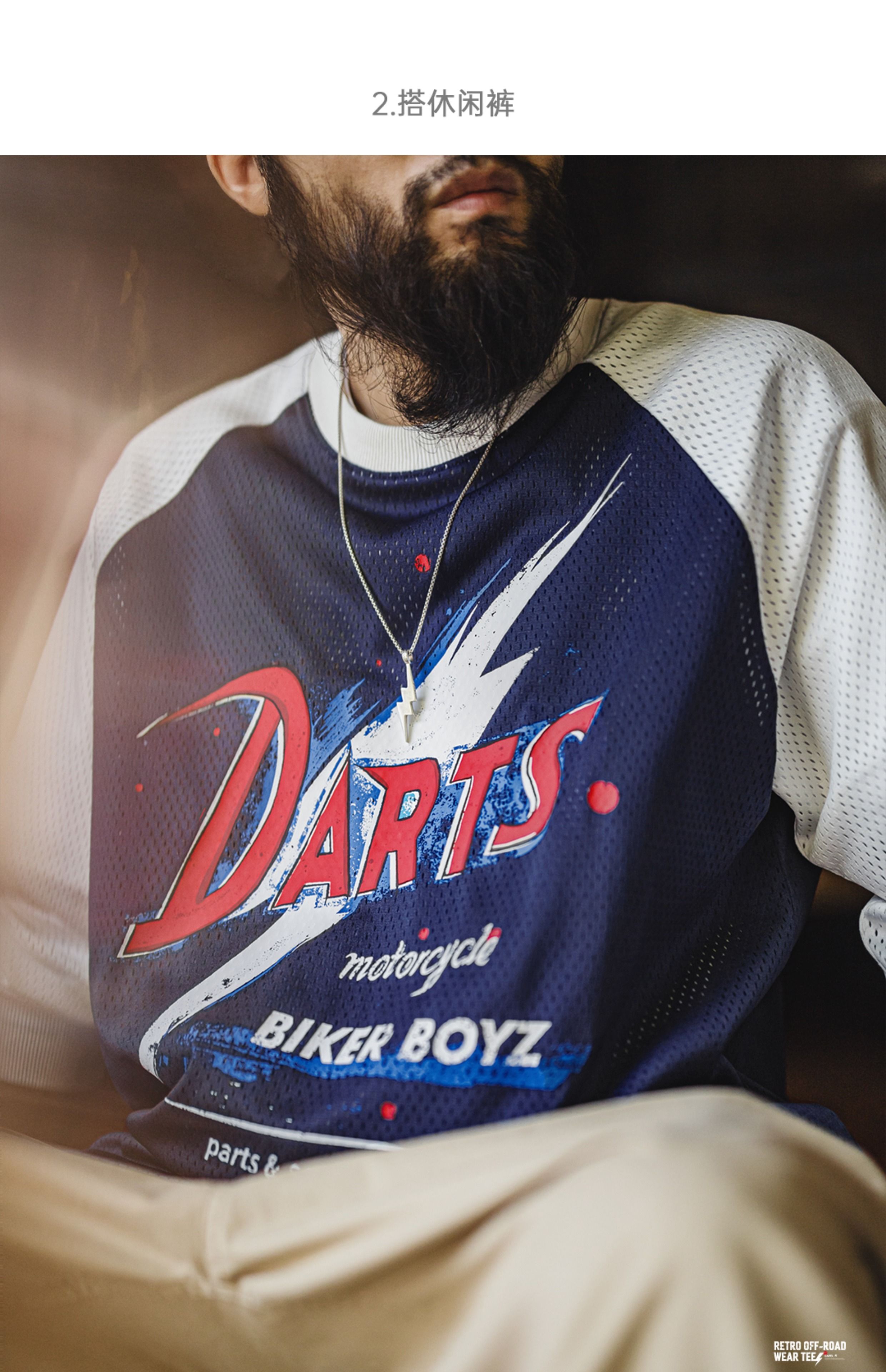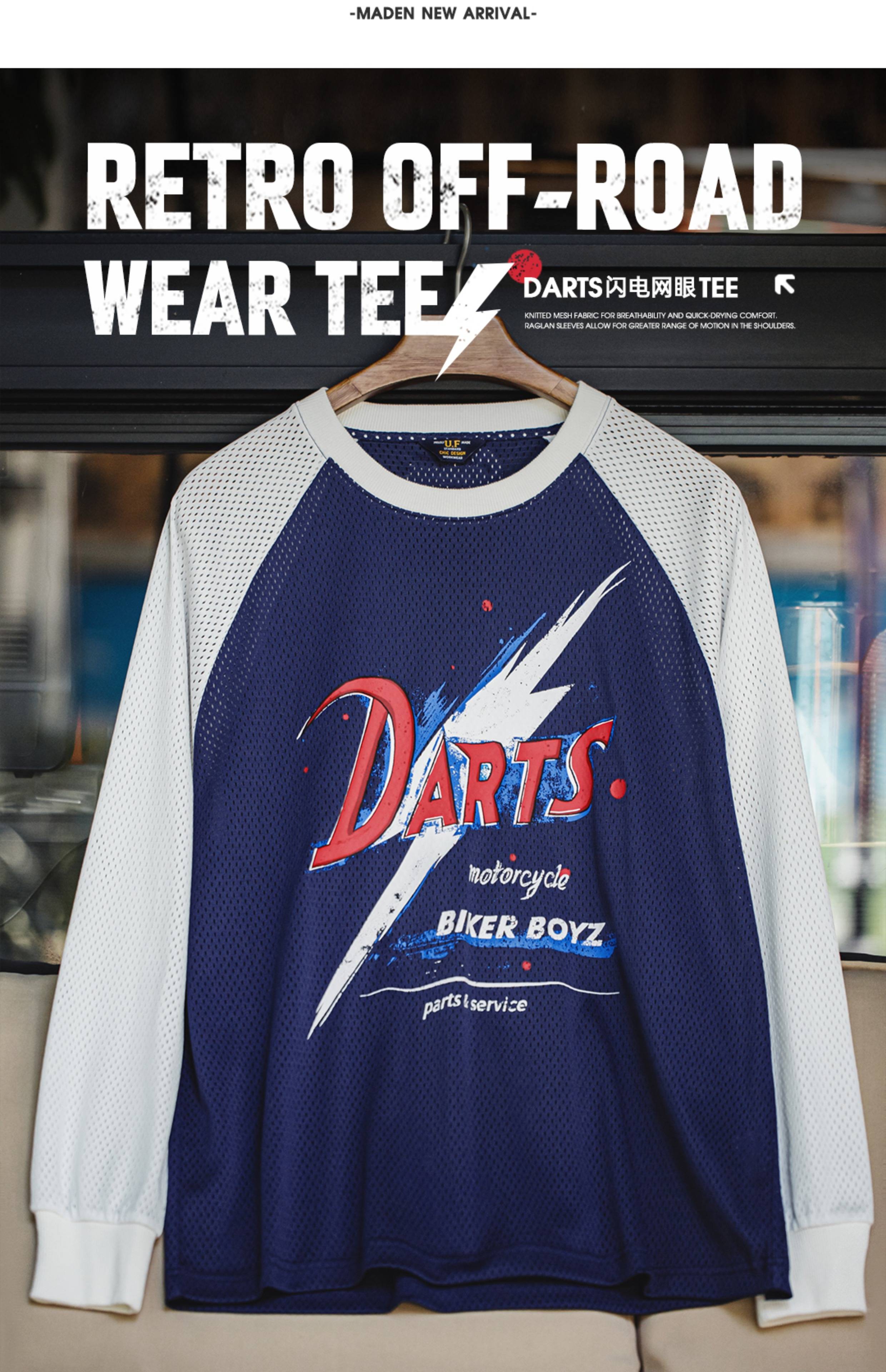 马登工装美式印花长袖T恤镂空撞色针织插肩袖垂感套头卫衣男夏秋