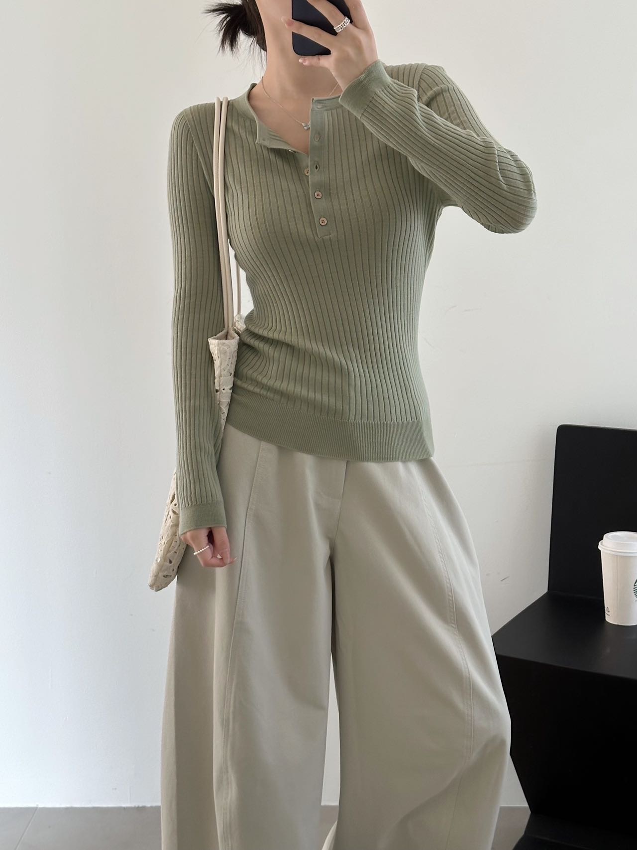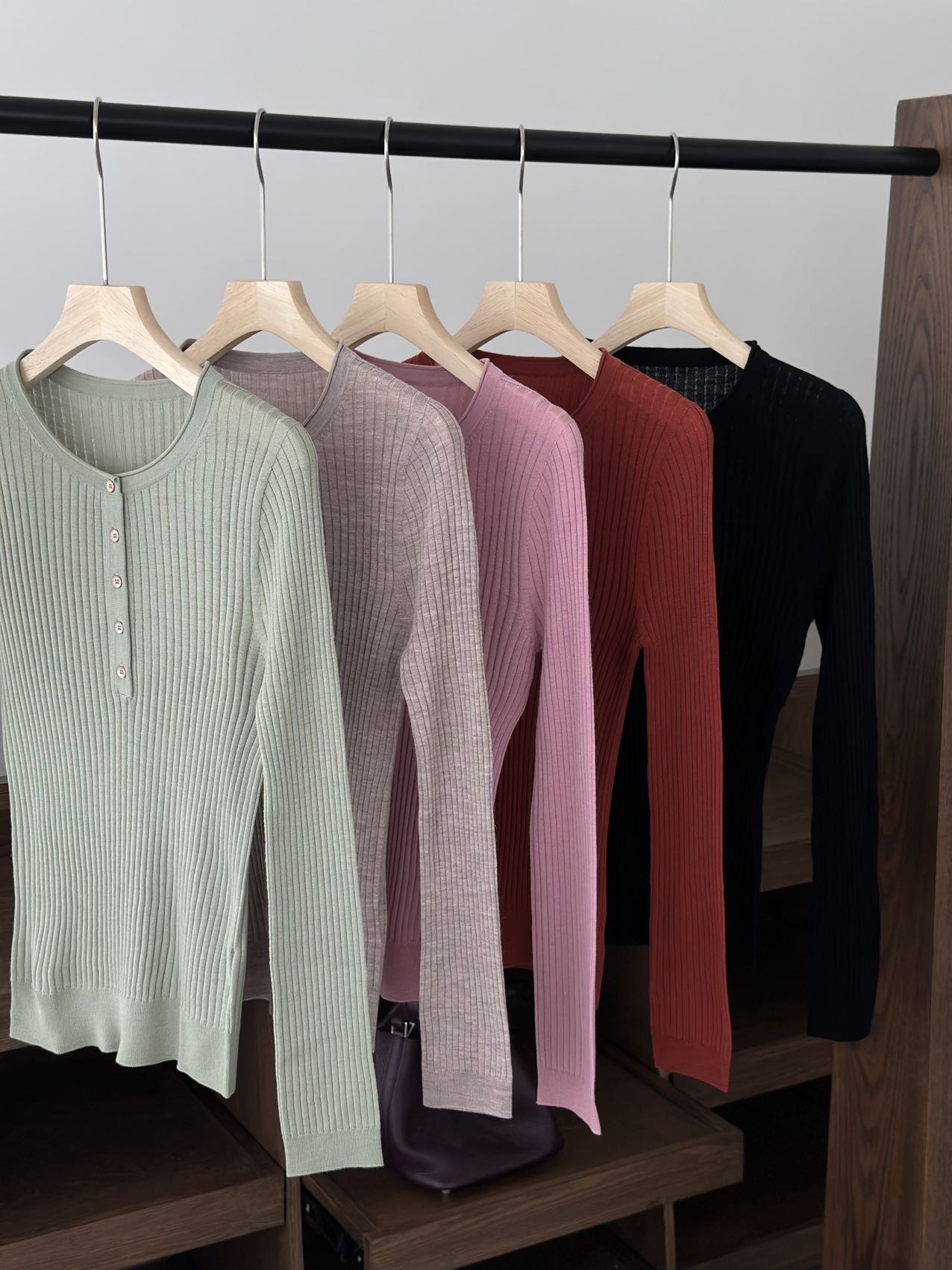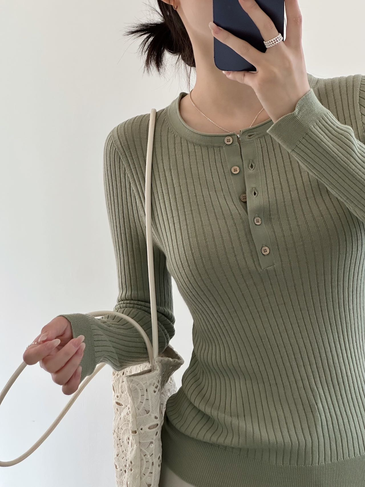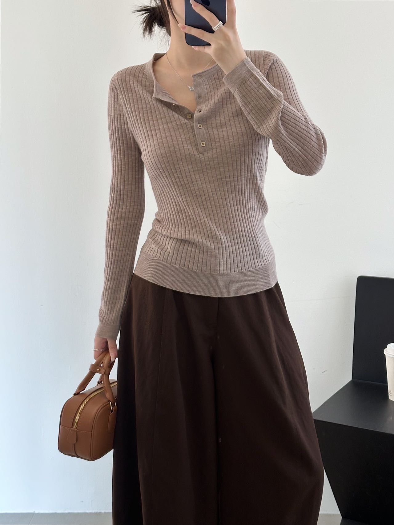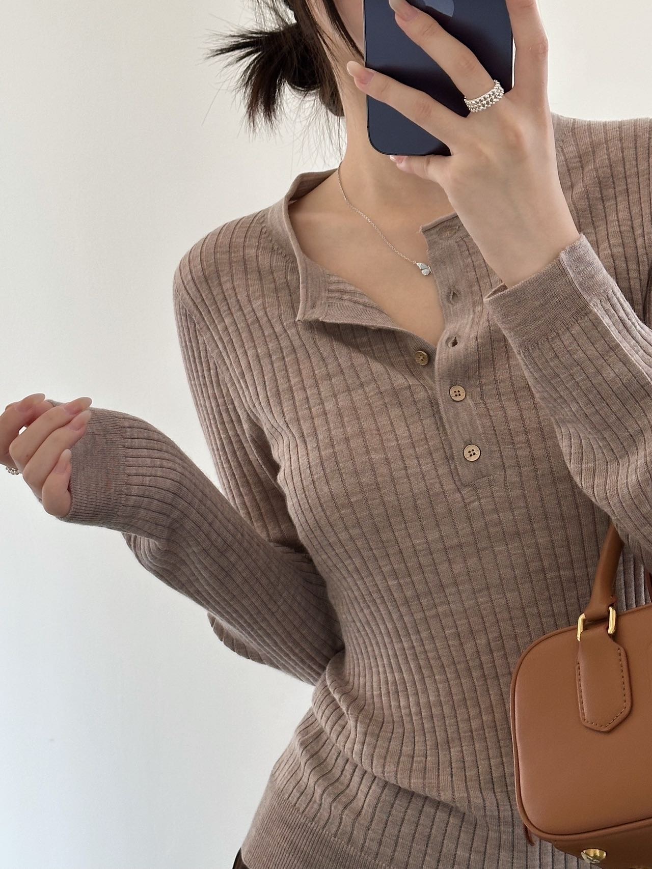 18针80支,简约气质的亨利坑条修身针织衫,五色都经典易搭,不挑人穿。岛精无缝一体18针,采用日本无缝机,从领口至下摆无缝衔接