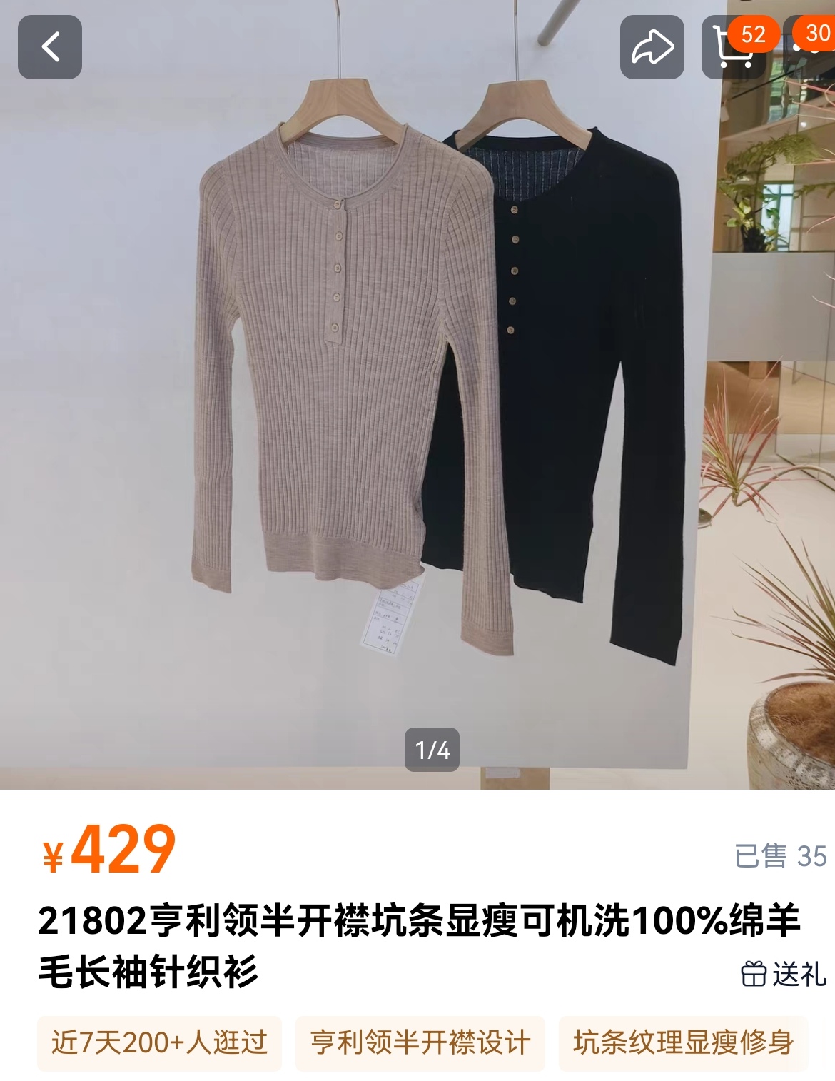 100%新澳绵羊毛无缝一体成衣!巴素兰工艺不起球不变形。