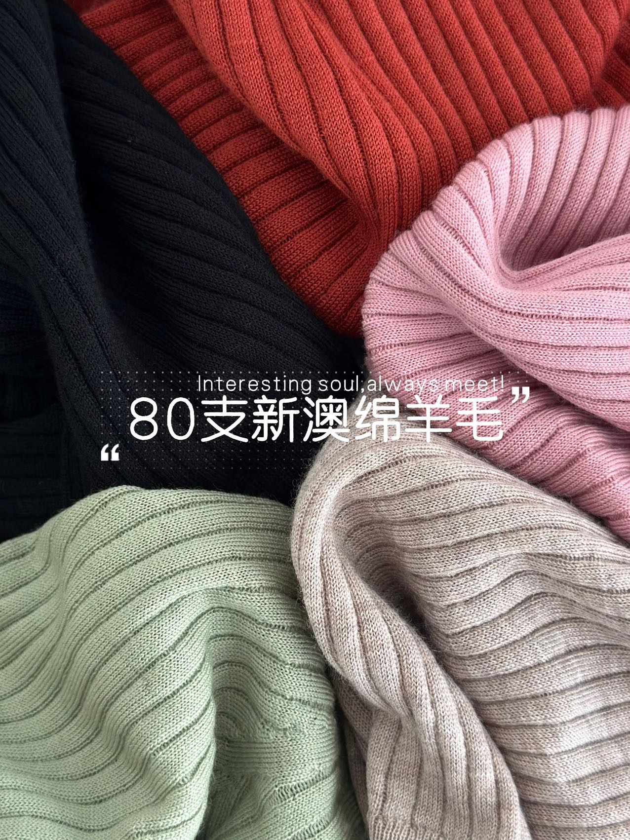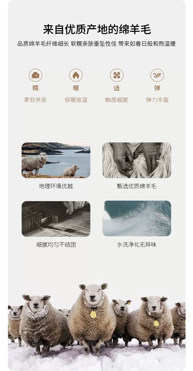 18针岛精一体机,天花板工艺织造纱线极细腻柔软,质感高级!100%新澳绵羊毛,80支精纺超细纱线!