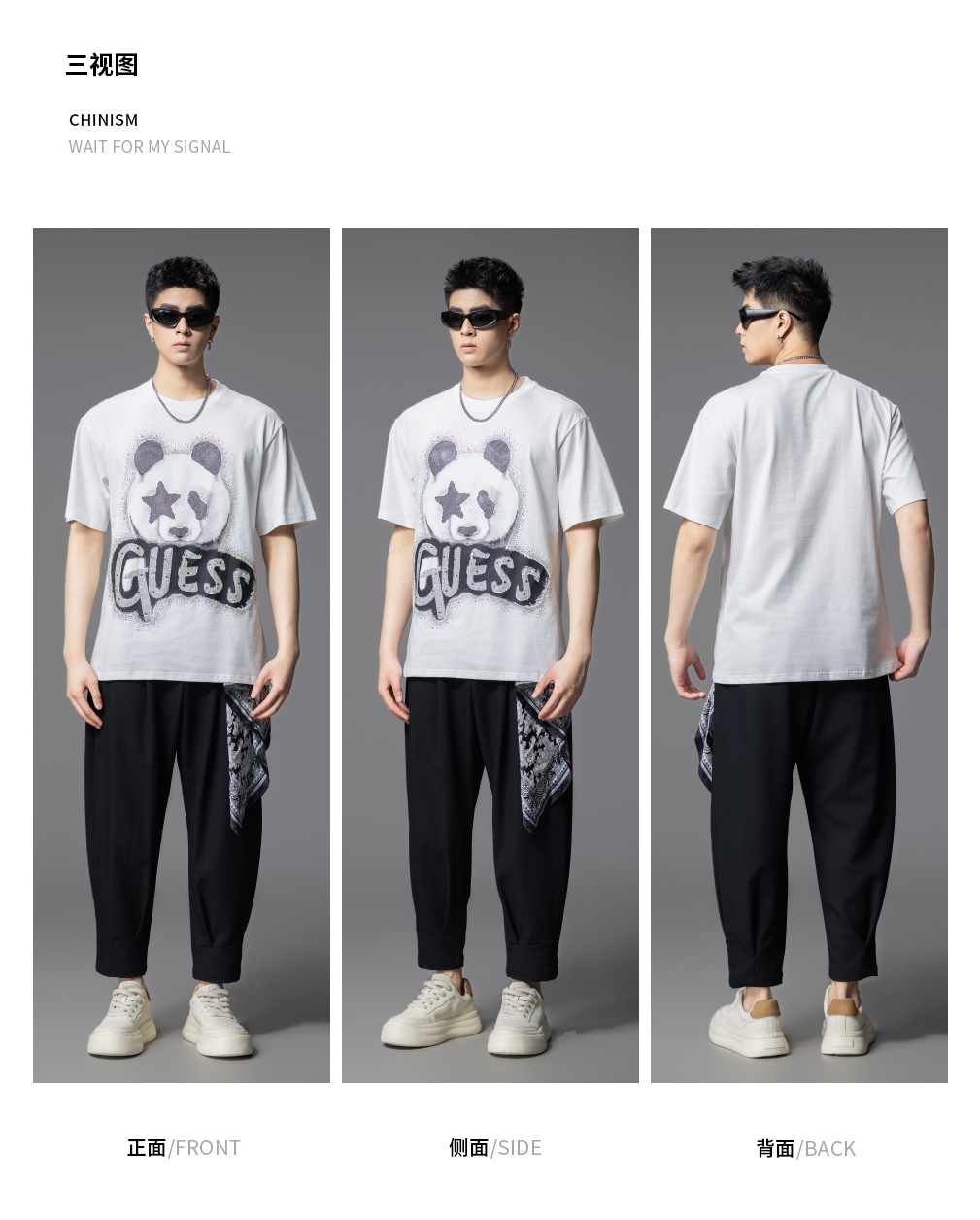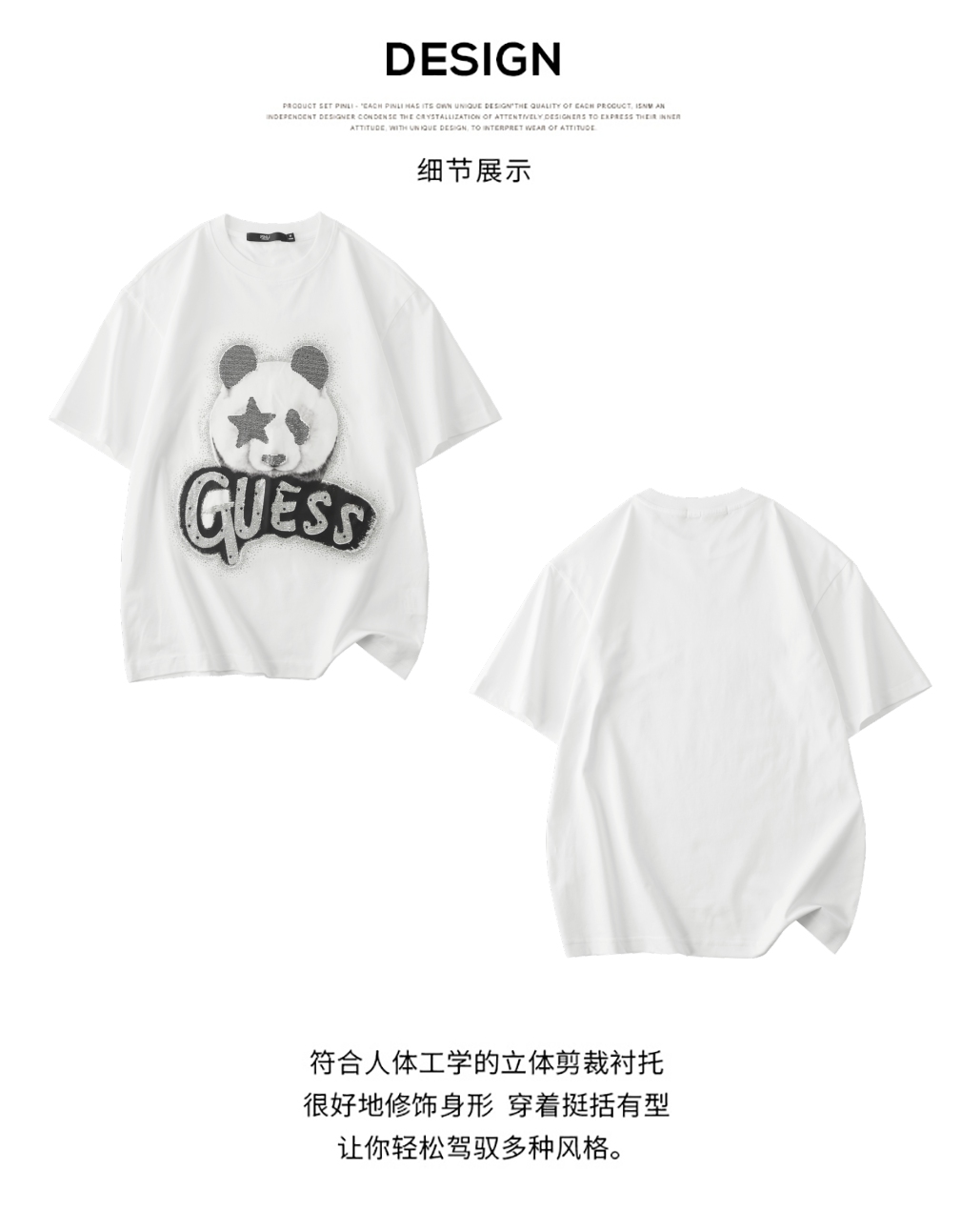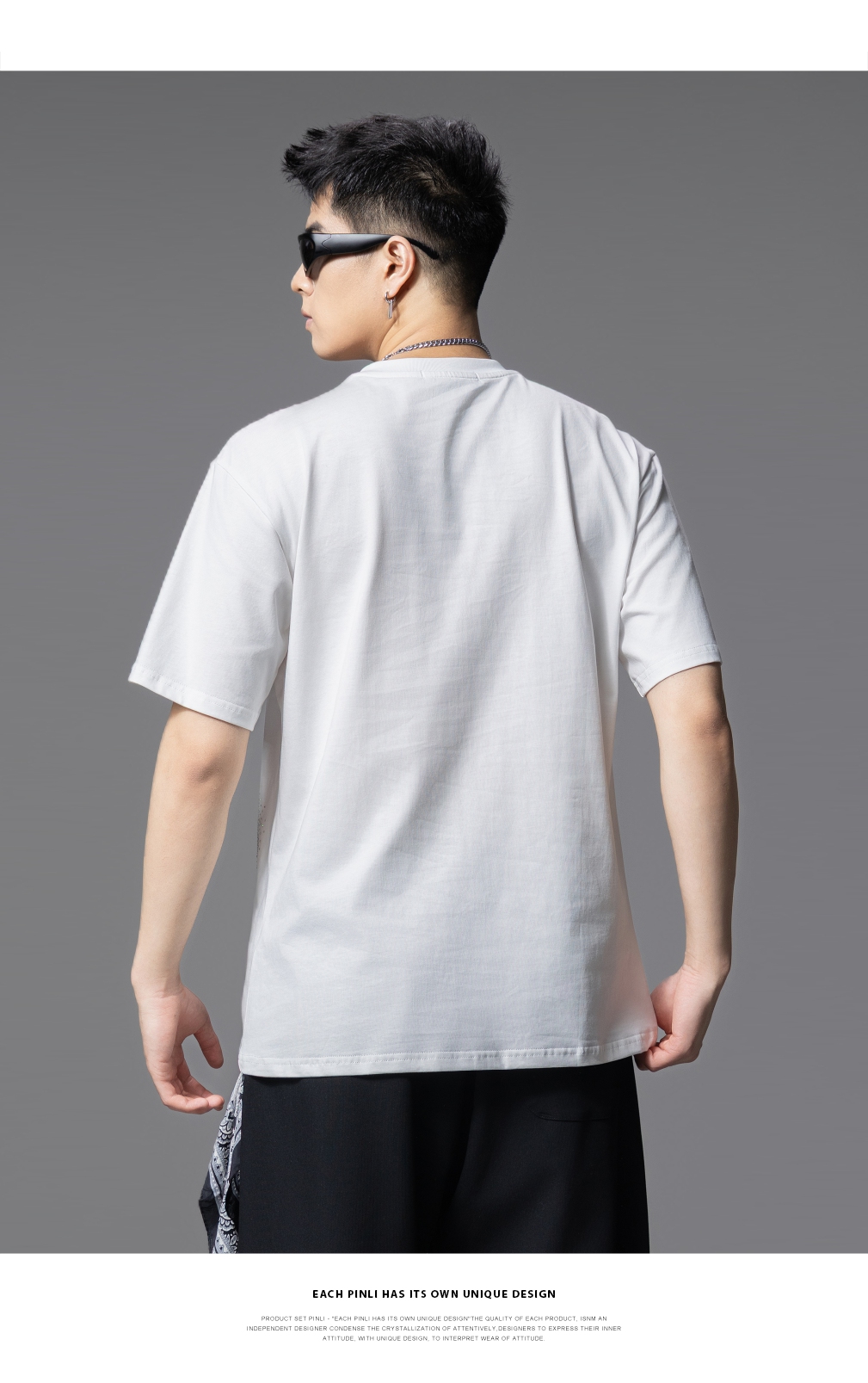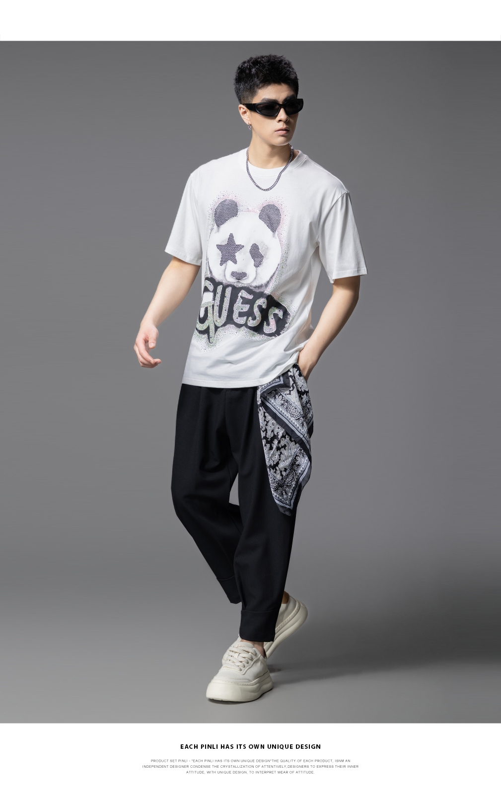 PINLI品立2025夏季新款男士圆领熊猫字母烫钻短袖T恤落肩潮牌上衣BG252111029