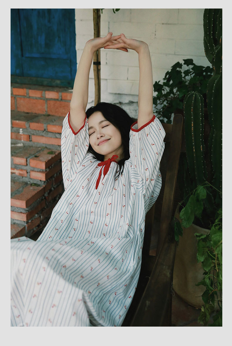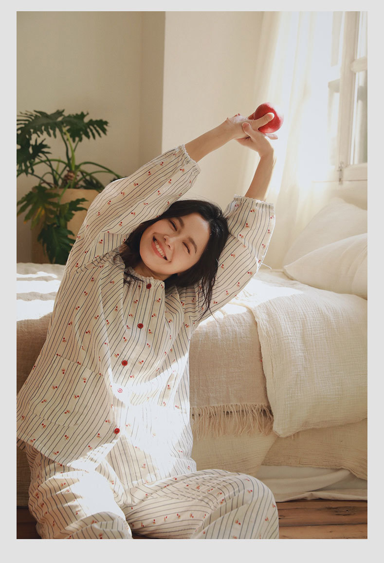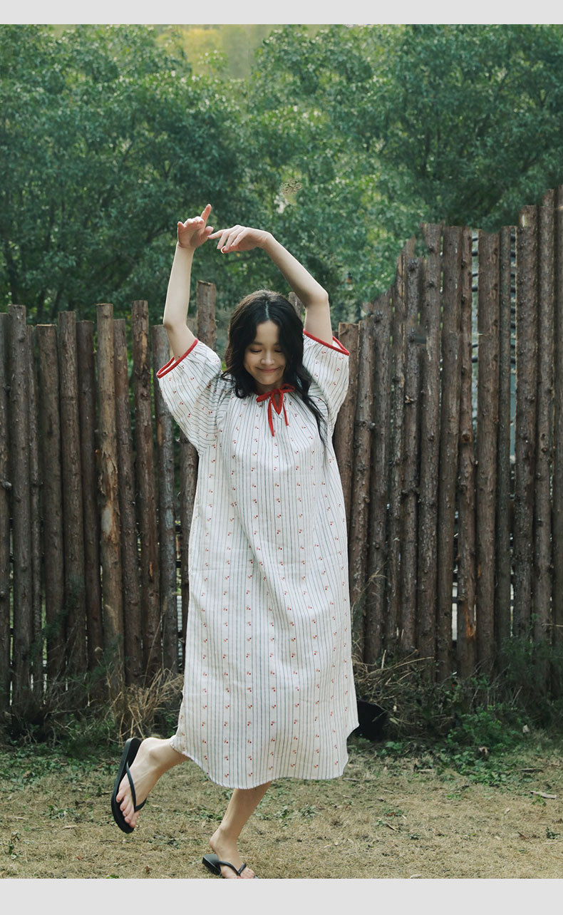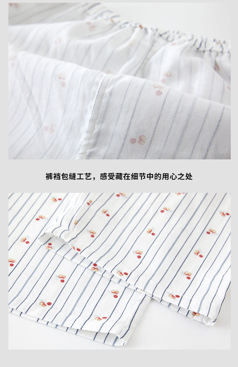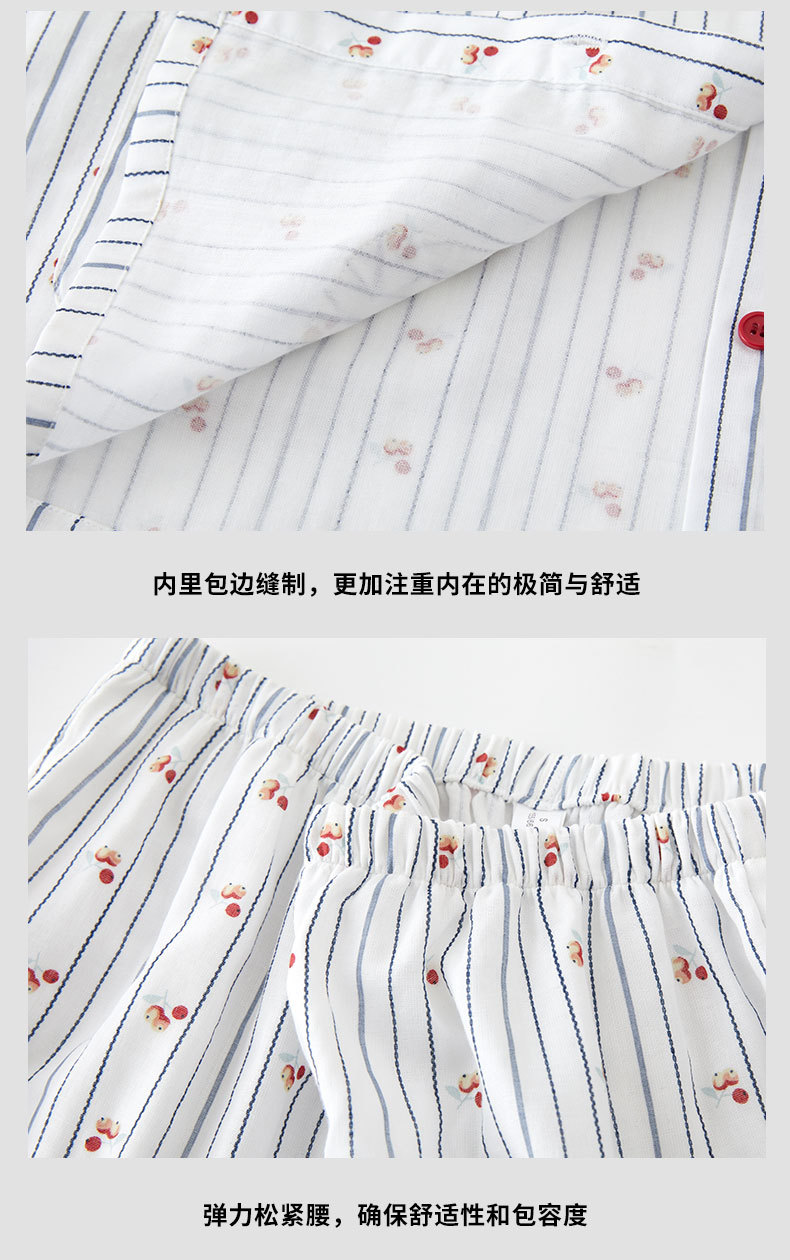 全棉双层纱~法式复古小樱桃纯棉睡裙/长袖套装春夏季女士睡衣女可外穿大码全棉家居服月子服
