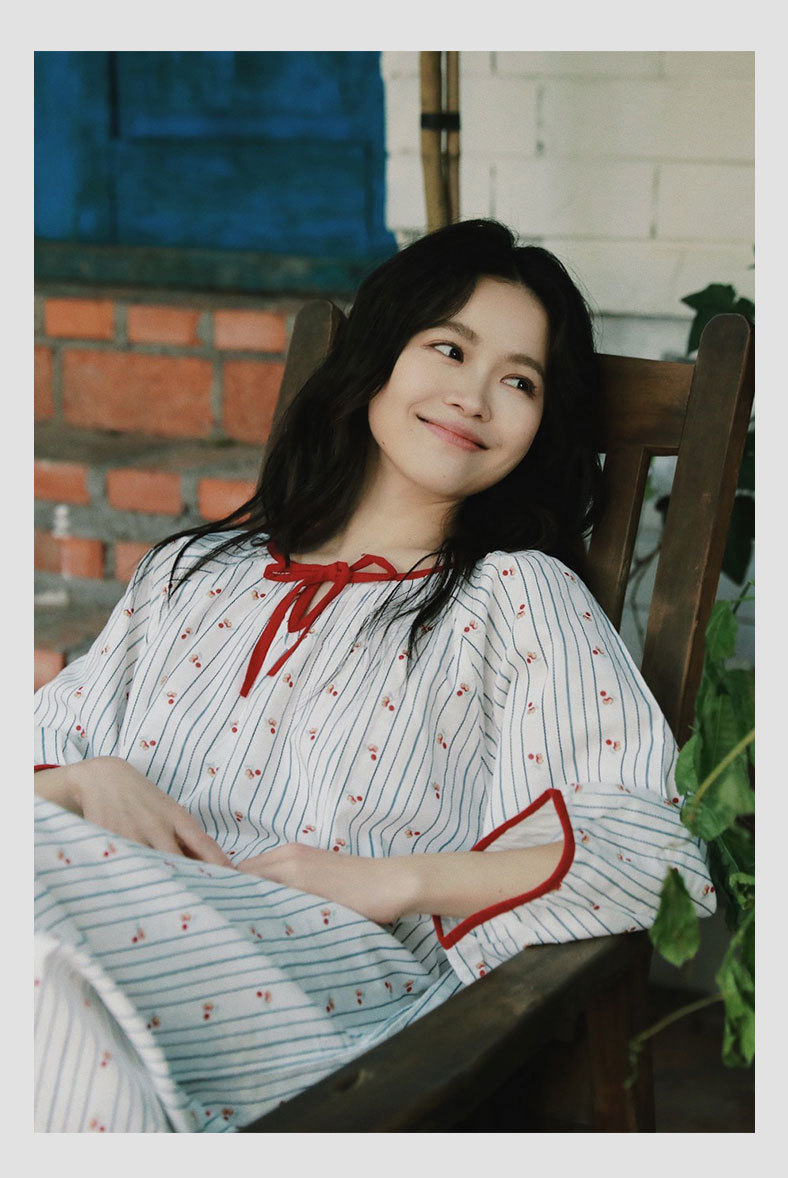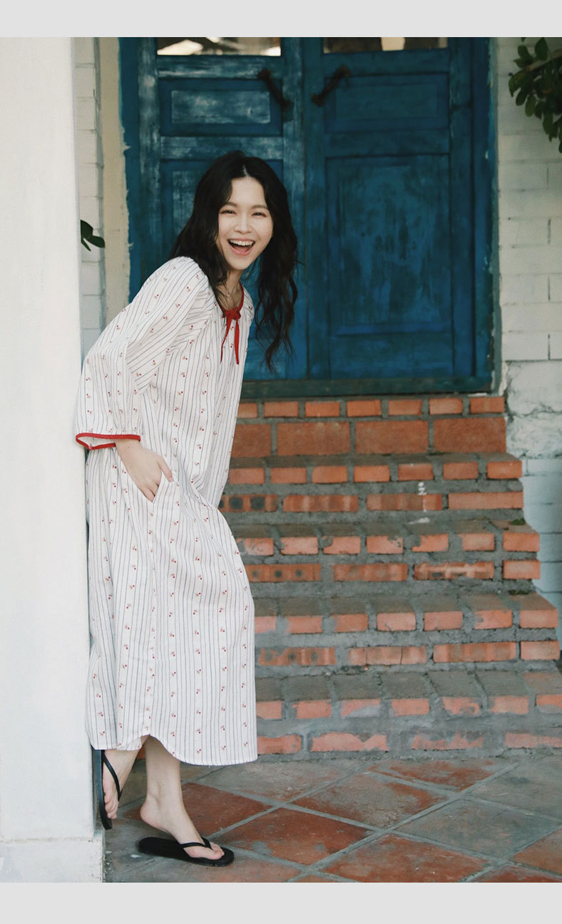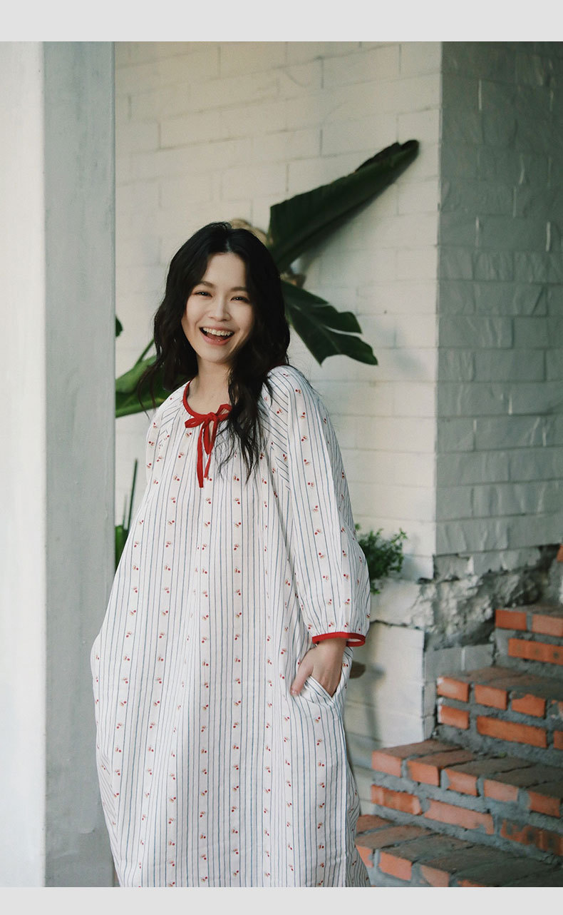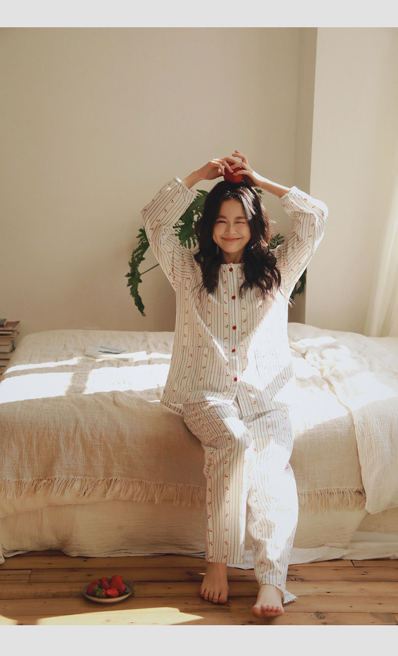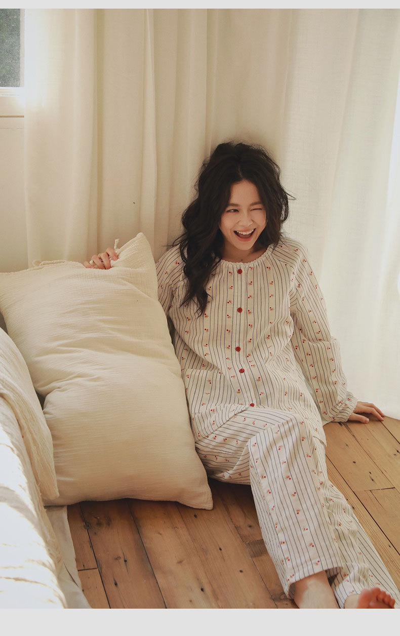 全棉双层纱~法式复古小樱桃纯棉睡裙/长袖套装春夏季女士睡衣女可外穿大码全棉家居服月子服