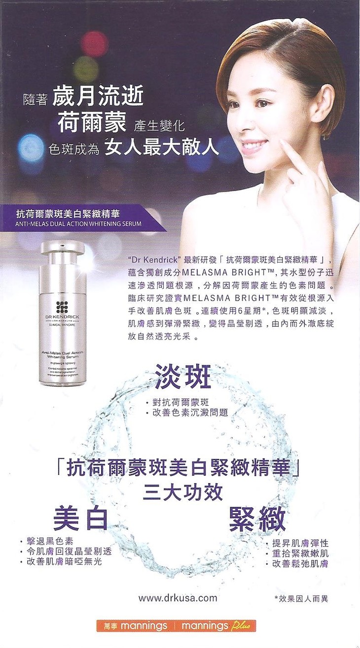 要消除荷尔蒙斑这个衰老的标记,定期进行激光疗程及平日做足防晒措施都会有帮助,但关键方法当然是要从根源入手,针对荷尔蒙斑形成的原因,彻底解决问题。来自美国的皮肤问题专家Dr. Kendrick,研创出全新抗荷尔蒙斑美白紧致精华,是市面上少有针对改善荷尔蒙斑的美白产品,当中的引入独家专利成分MELASMA BRIGHT TM,经临床测试验证,连续使用6星期*,有效淡化荷尔蒙色斑,令肌肤重拾光洁晶莹,嫩白年轻!