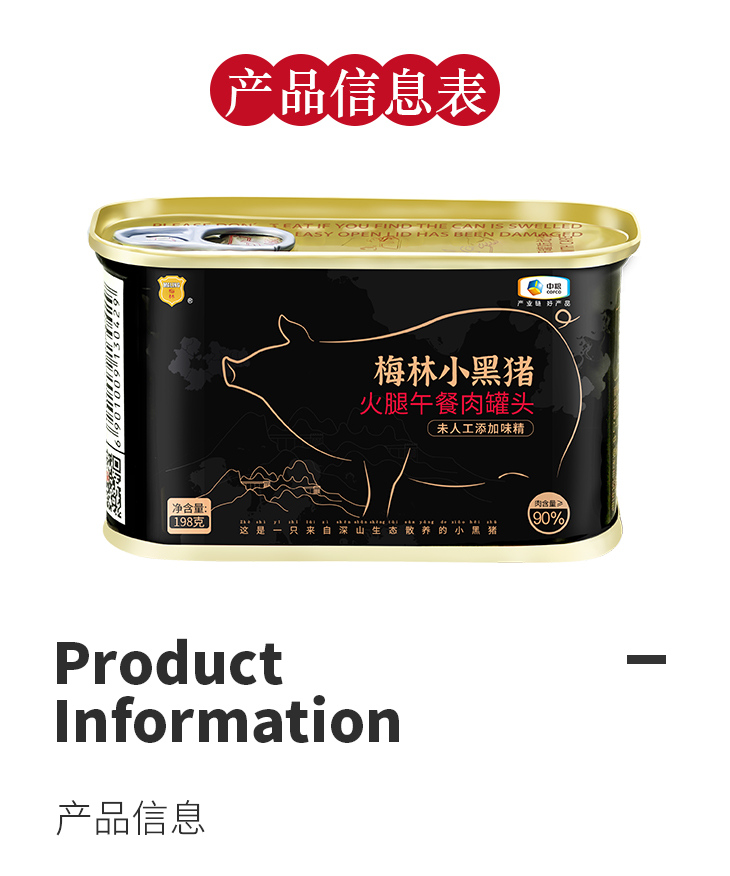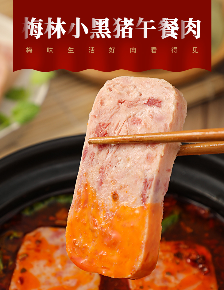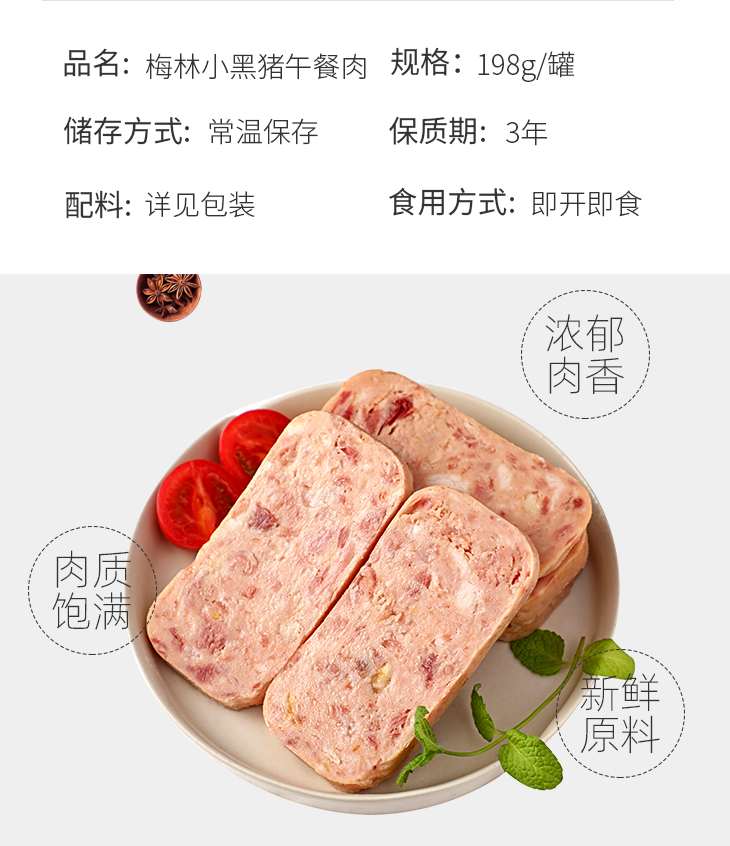 中粮梅林午餐肉罐头 小黑猪 火腿午餐肉 儿童午餐肉198g/罐开罐即食方便速食 198g*6罐【含黑猪肉】