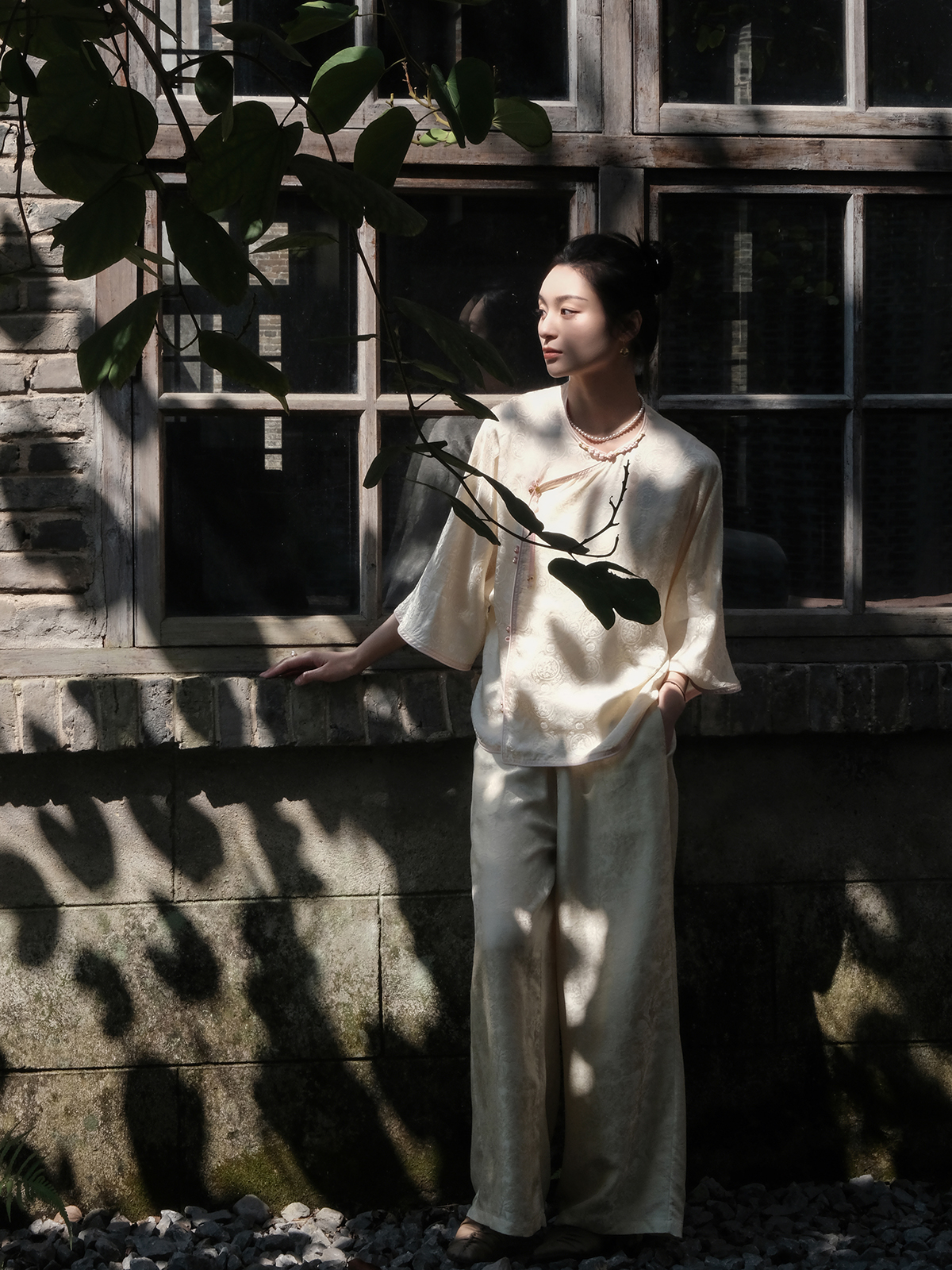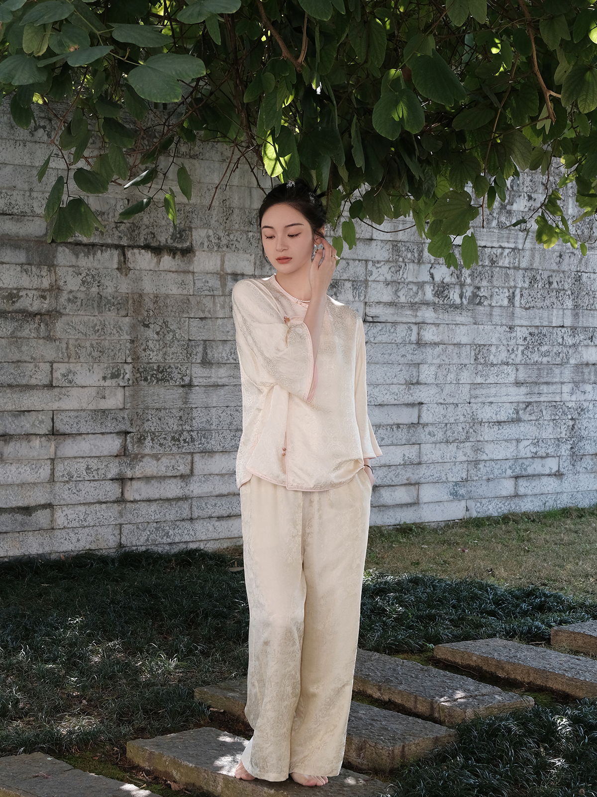 盛唐婧 |米杏色国风提花上衣[特价品]