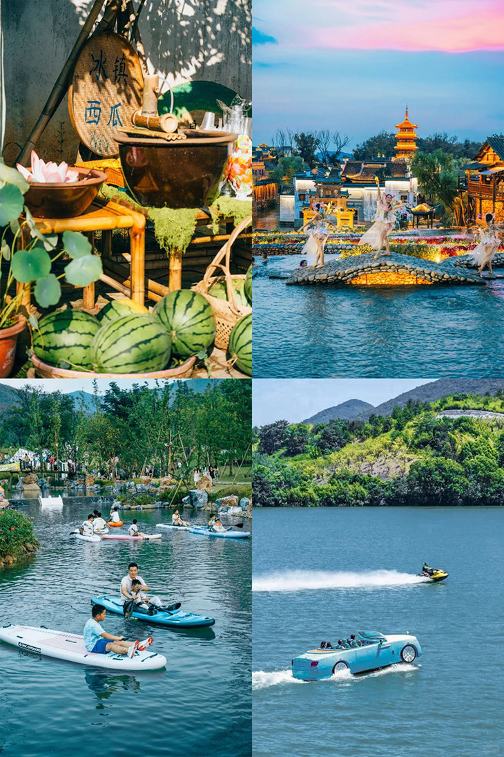 窑湖小镇是集山、水、陶、竹、茶于一体的江南度假小镇。小镇白墙黛瓦、小桥流水,白天可乘云上小火车穿梭茶田竹海,打卡龙窑遗址体验紫砂手作。夜晚灯光璀璨,龙形水秀震撼上演,水火光乐交织,还有《飞鸟之约》实景演出,氛围感拉满。可沿湖漫步、赏景、品江南小吃。