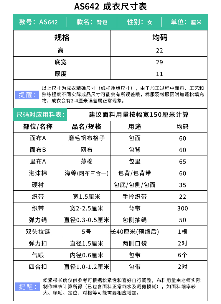 裁缝学苑AS642小众设计复古机能风格纹双肩背包纸样女装服装样板