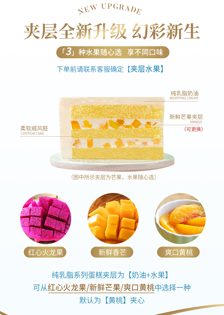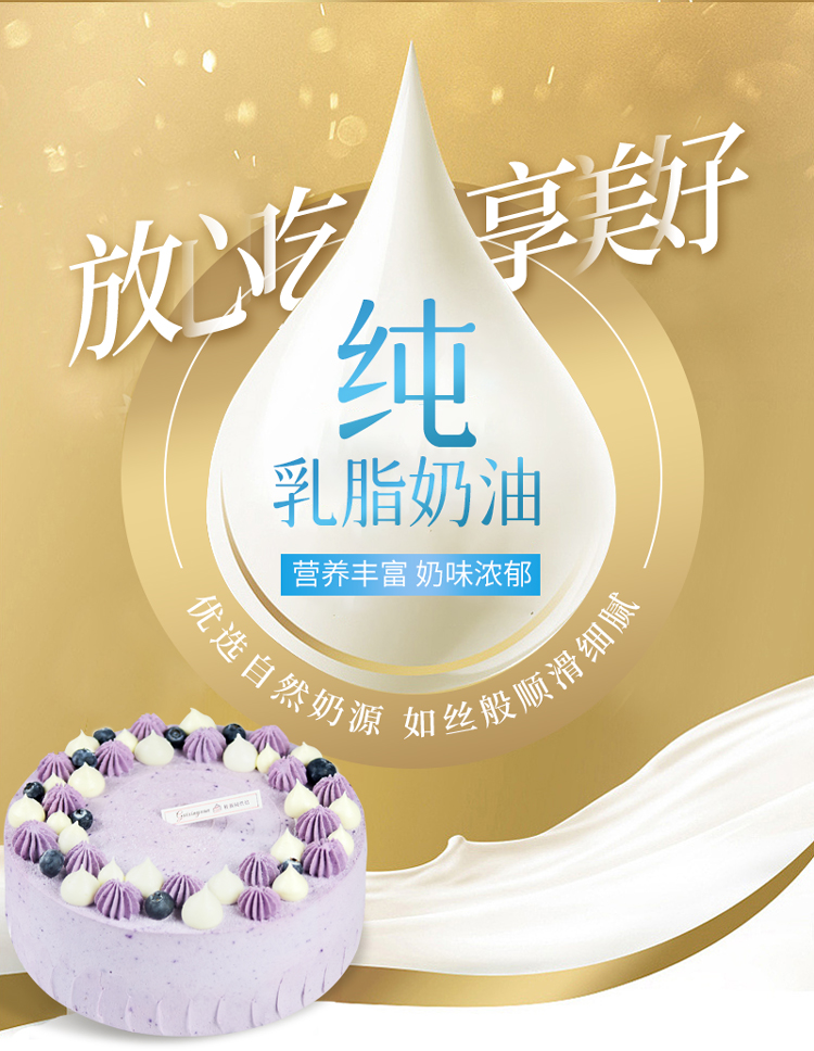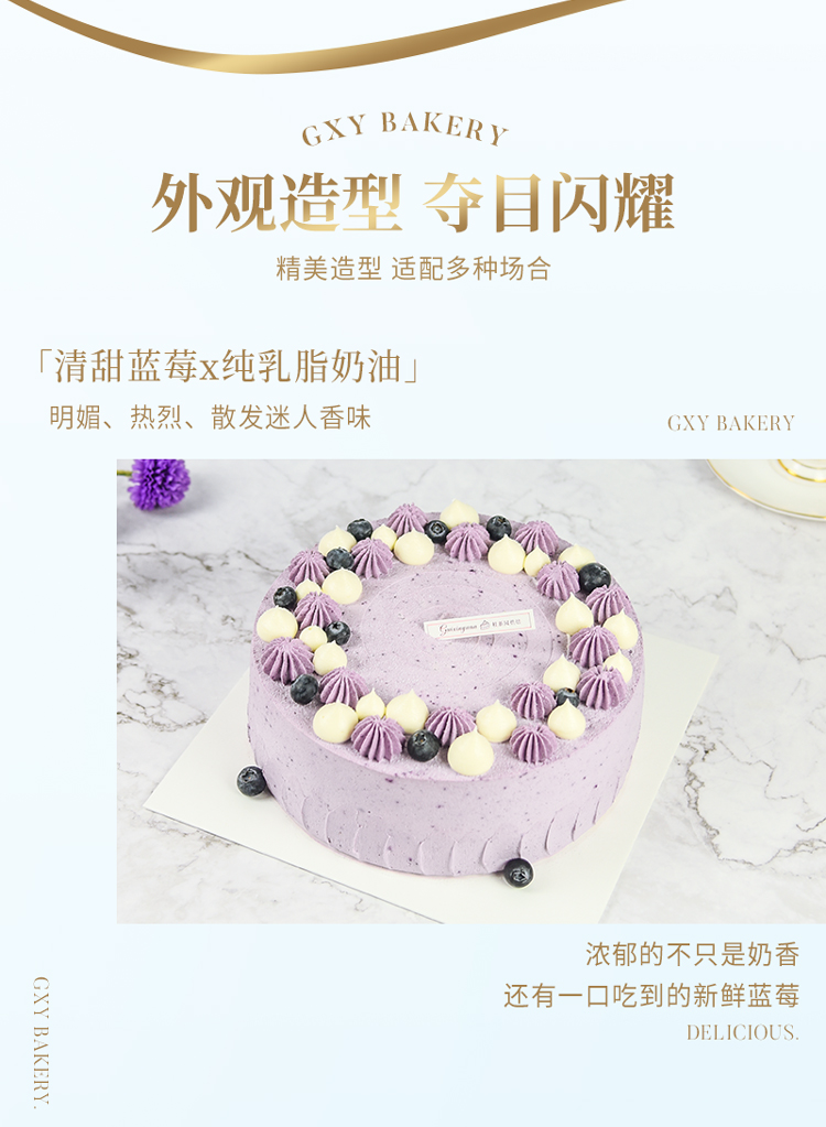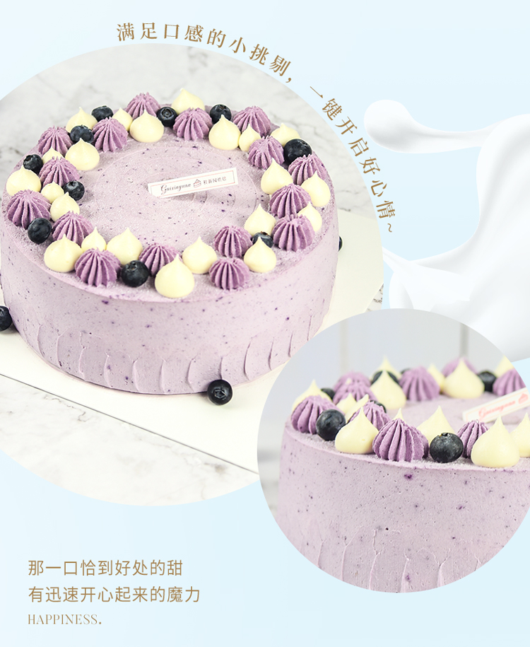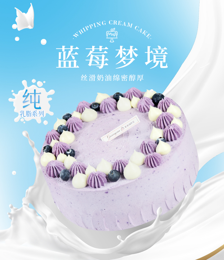 【蓝莓梦境】 纯乳脂生日蛋糕—丝滑奶油绵密醇厚,夹层水果三选一,口感升级恰到好处