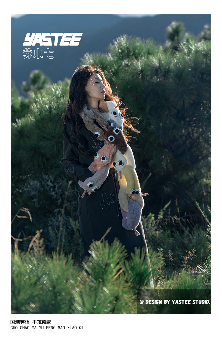 【1.21-2.6停发】芽小七原创手缝灵蛇盘珠围巾潮流百搭男女通用冬季柔软