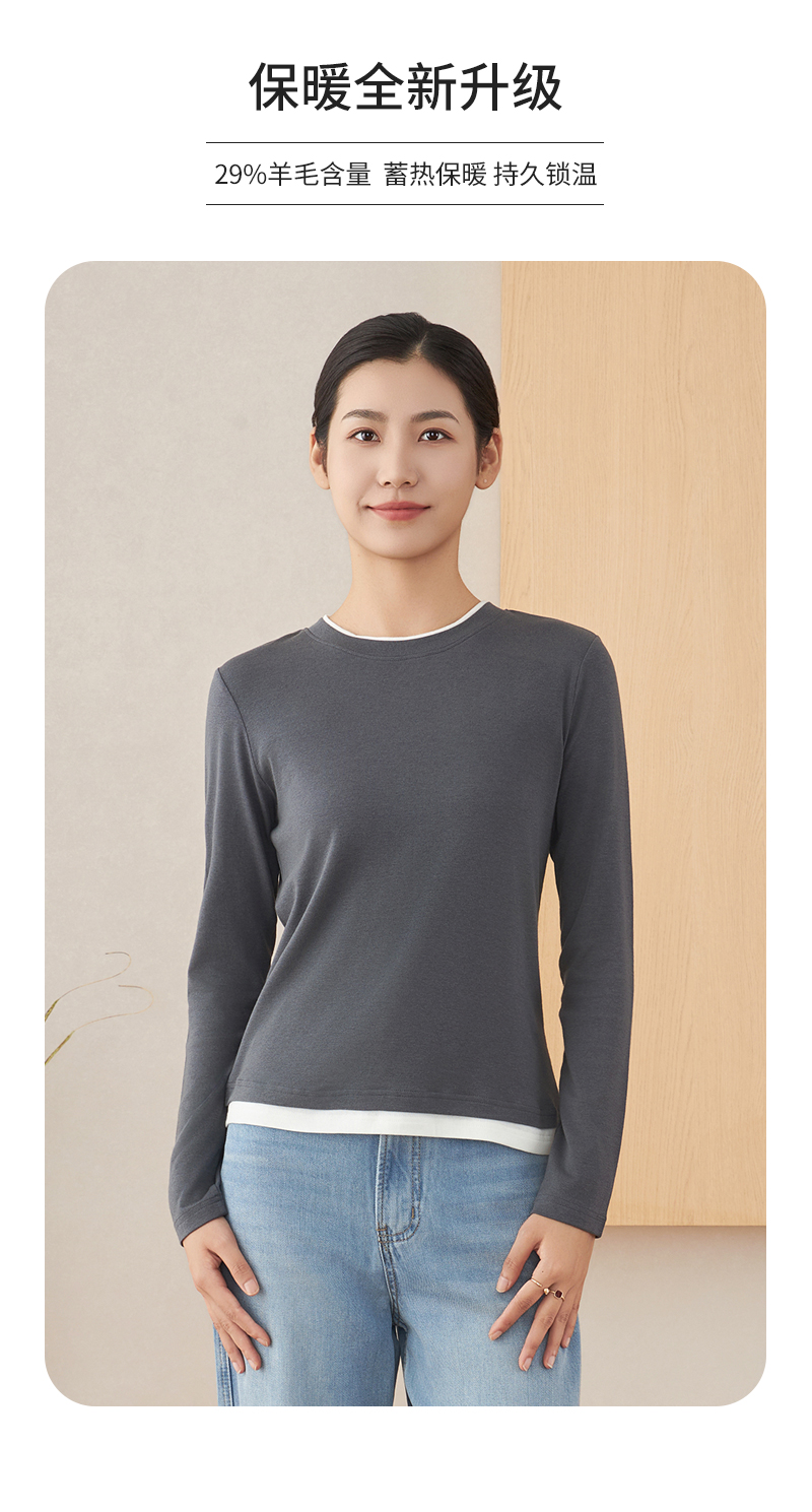 weyo秋冬女士羊毛养肤衣假两件打底衫A32310 商品图3