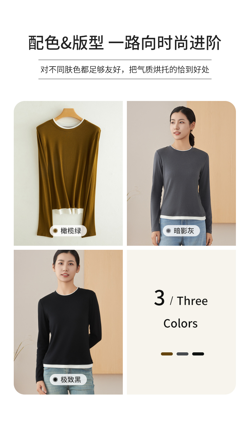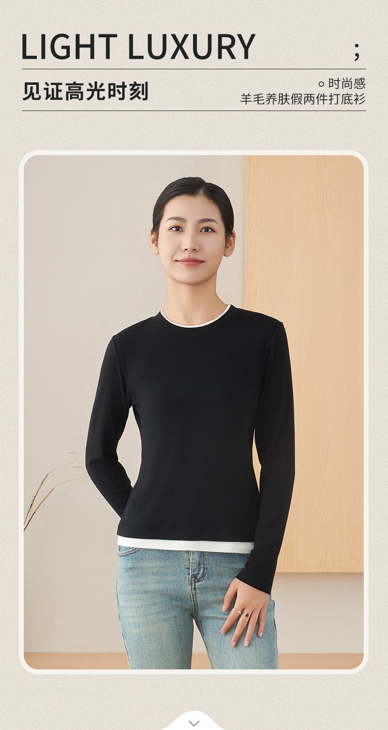 weyo秋冬女士羊毛养肤衣假两件打底衫A32310 商品图0