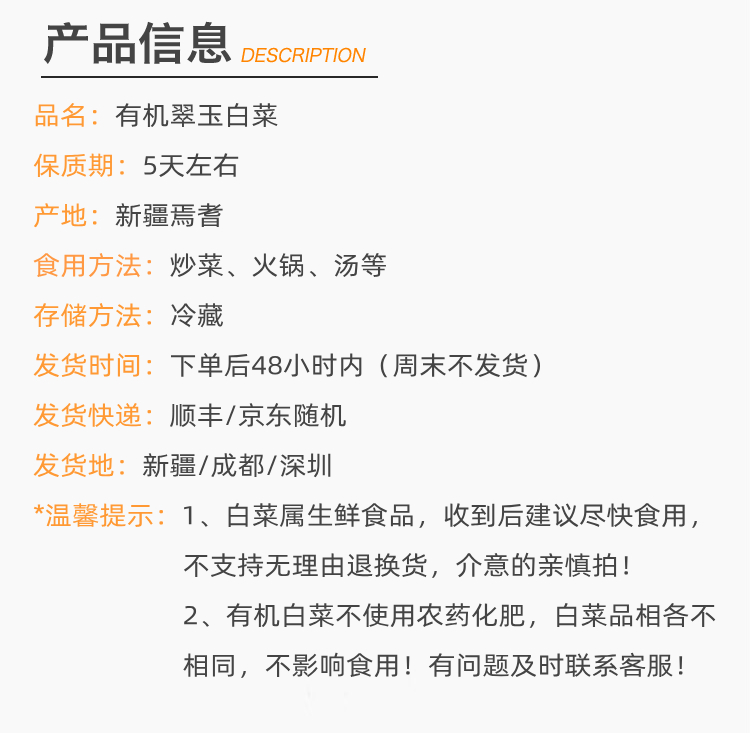 新疆 有机翠玉大白菜 4kg/箱(1~2棵)