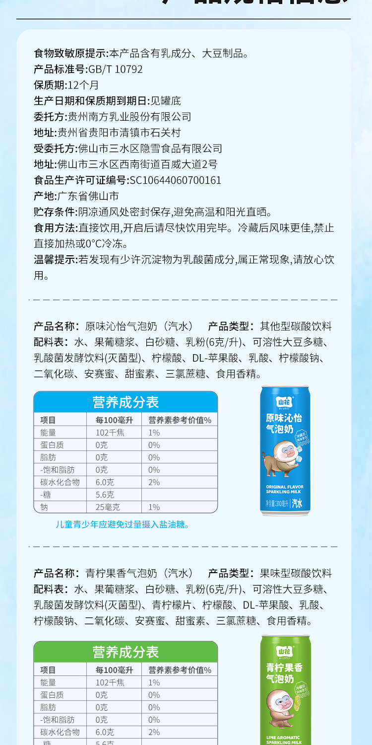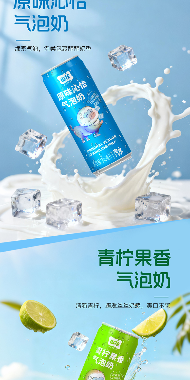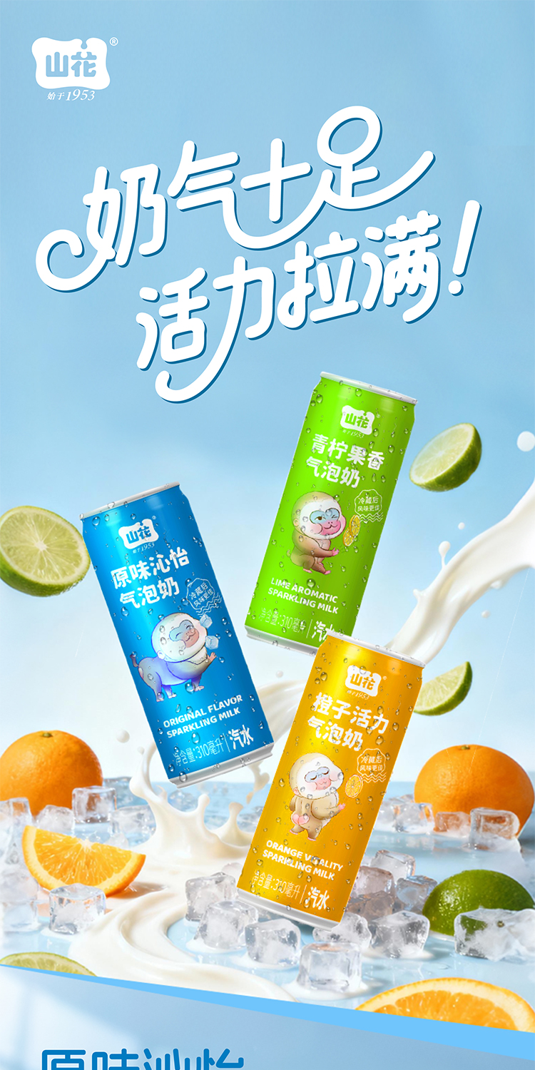 【新品上市】山花气泡奶碳酸饮料310mL/罐规格口味自选