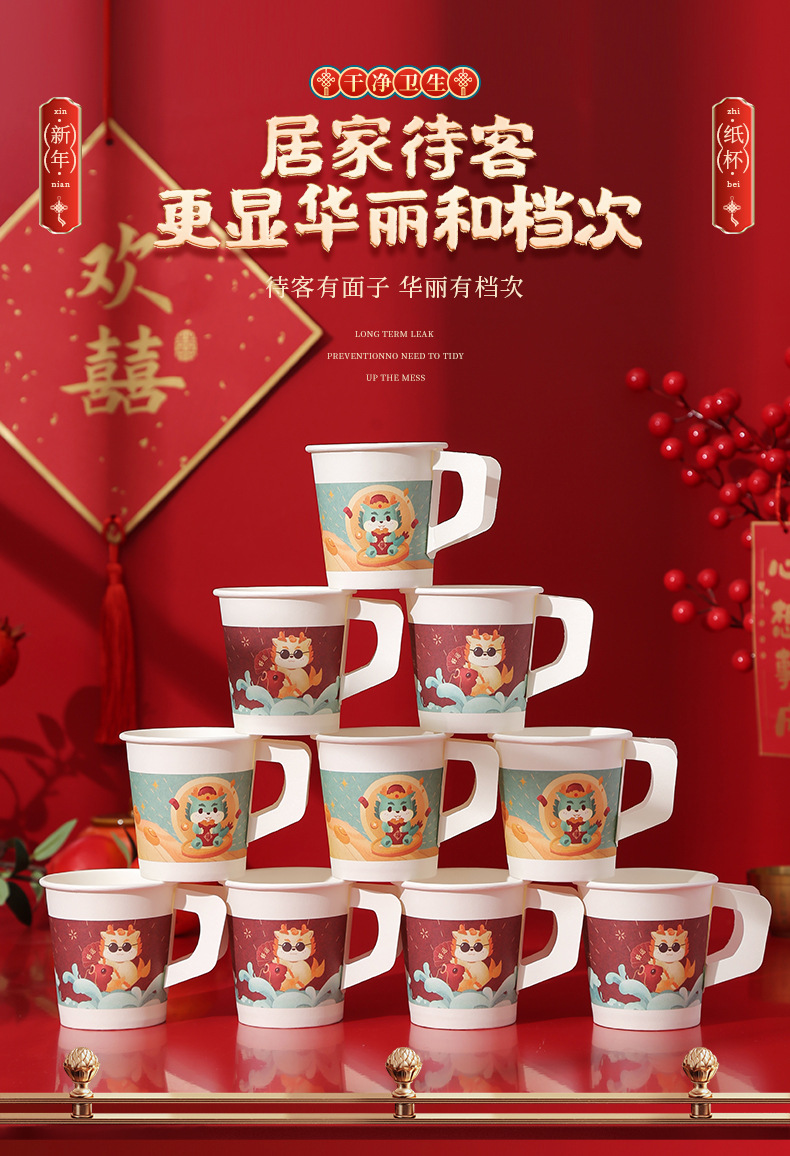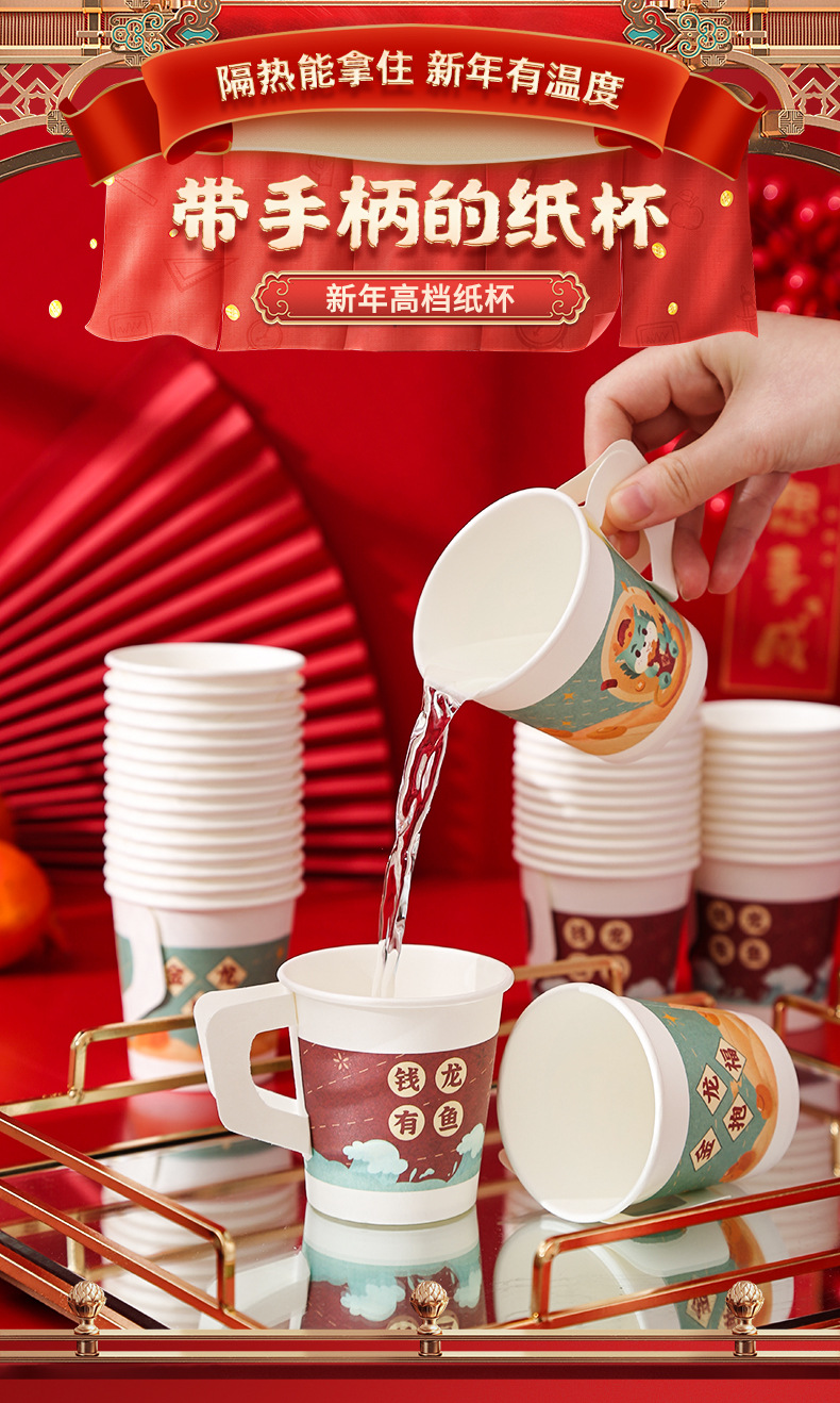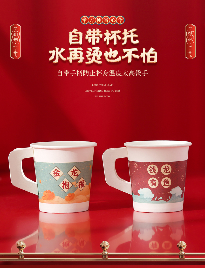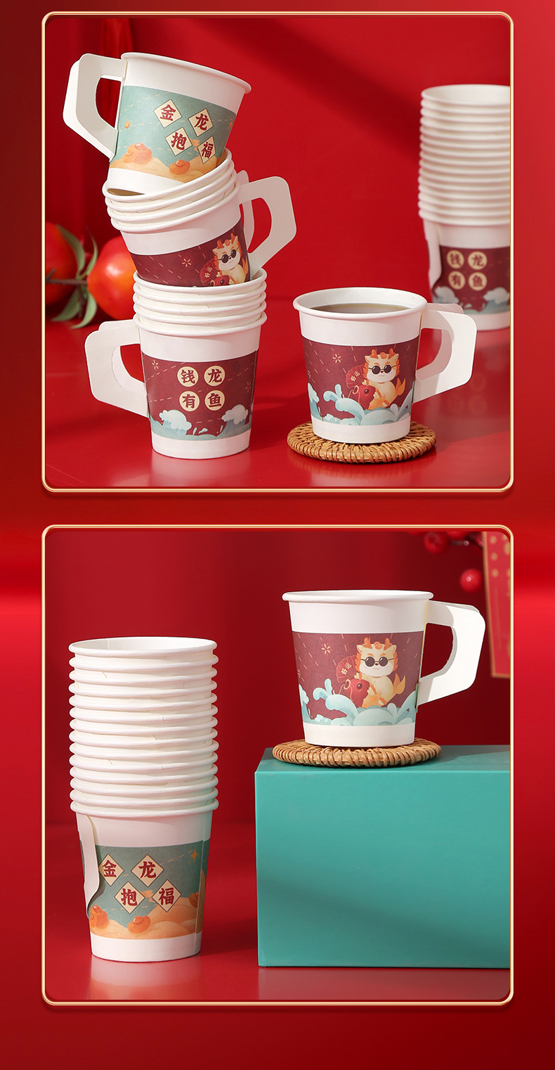 【金马抱福❗️马年新款手柄纸杯】新年元旦加厚防烫防漏喜庆家用,一次性纸杯QQ 商品图5