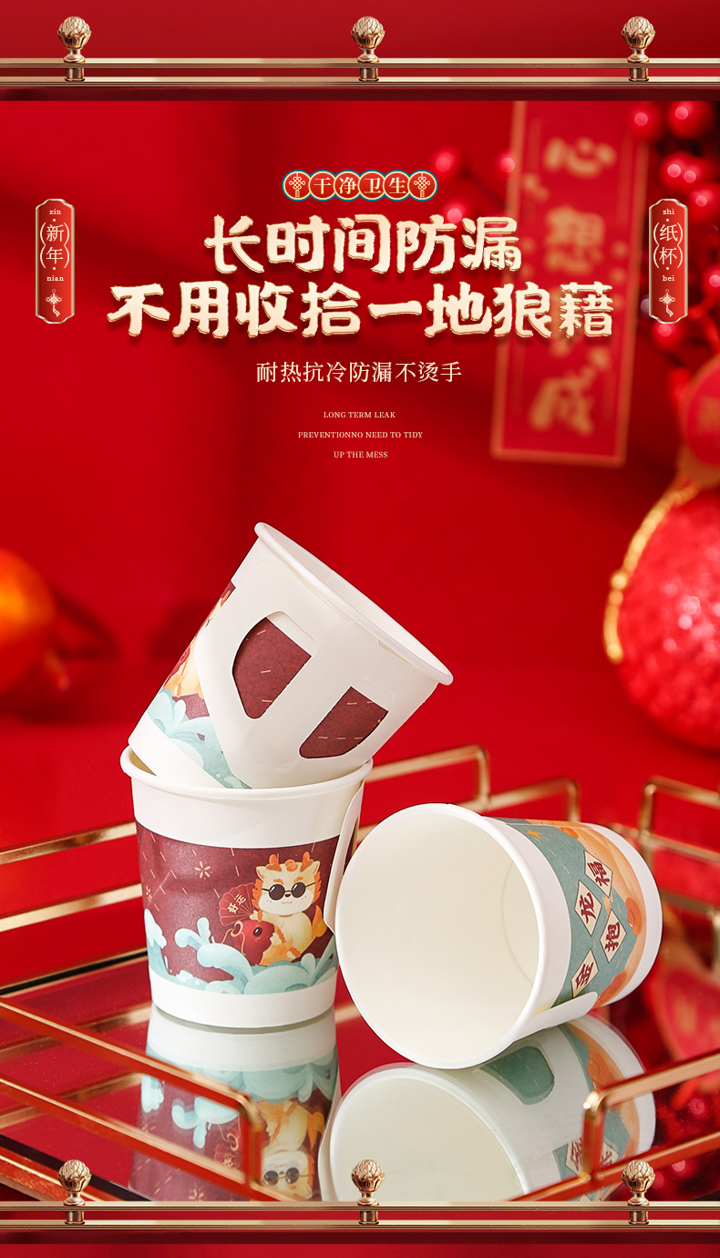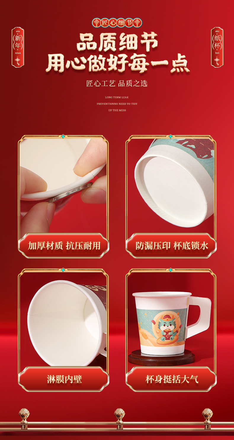 【金马抱福❗️马年新款手柄纸杯】新年元旦加厚防烫防漏喜庆家用,一次性纸杯QQ 商品图4