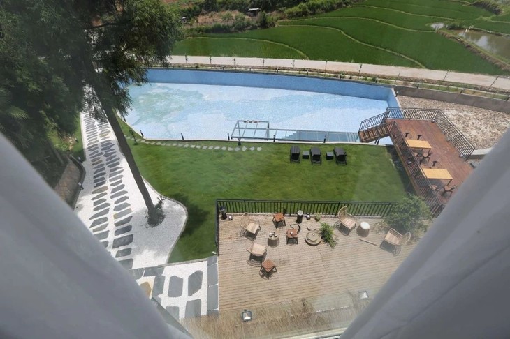 清晨睁开眼就能看到第一缕阳光,落地窗外蔚蓝的泳池水波粼粼,远处的农田、青山、绿地,绿得美不胜收,这就是在寒舍迴塘一天的开始。