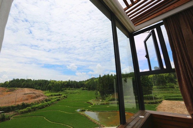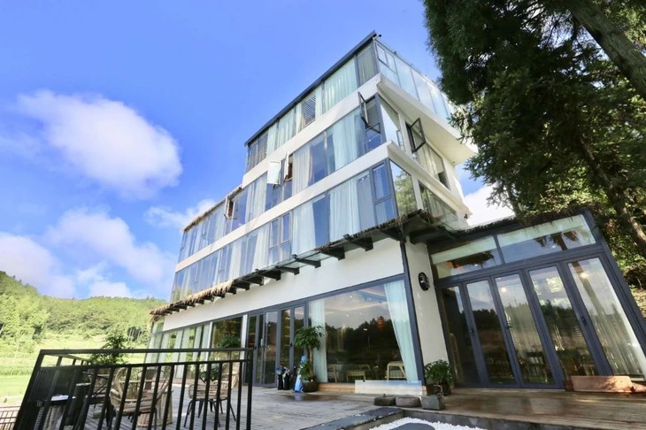 驾车驶入文成,沿着上山的公路蜿蜒向上,在蔚蓝纯净的天空和生机勃勃的树林的尽头处,你会看到一栋干净的玻璃房,那就是寒舍迴塘。