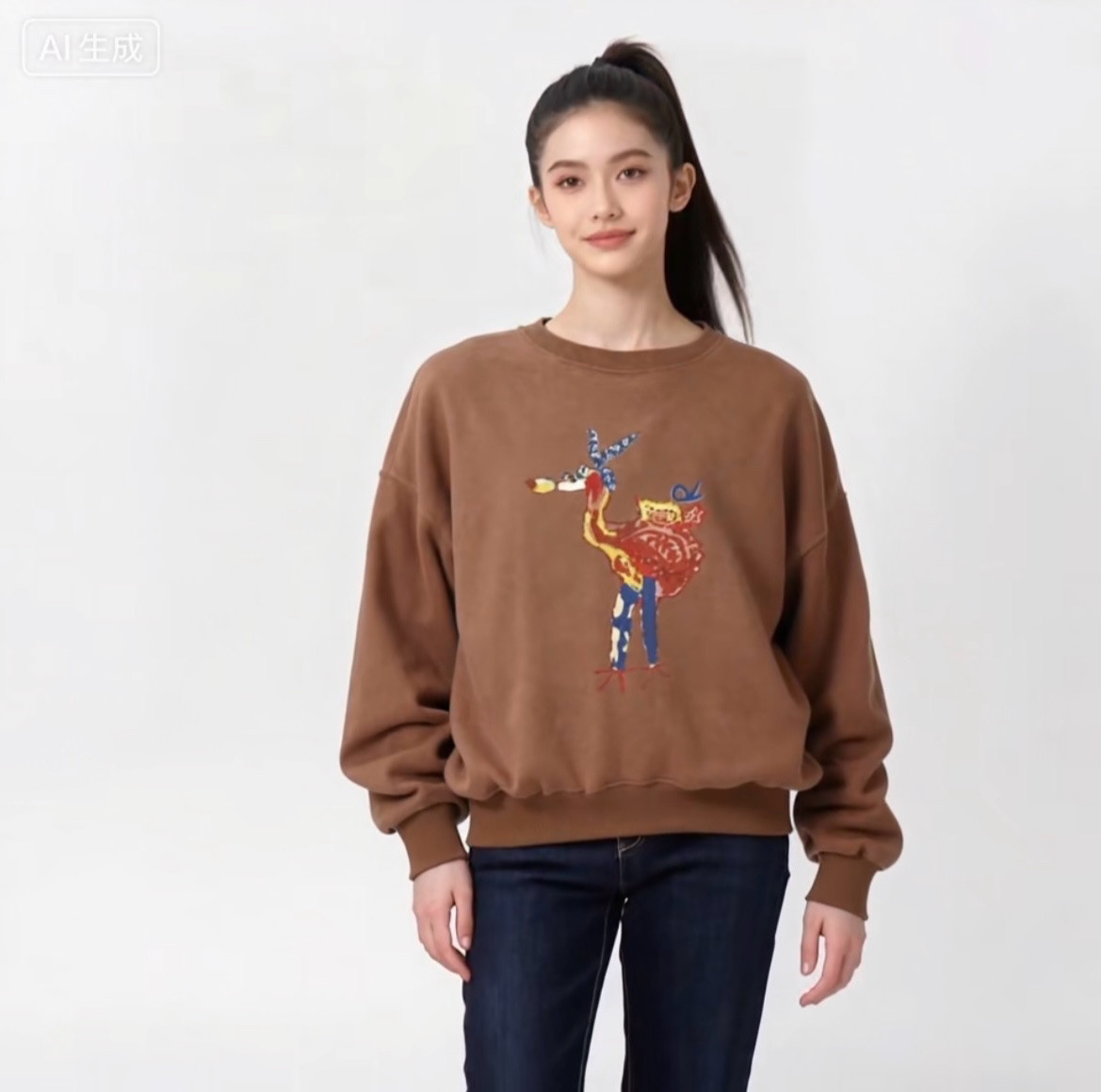 【11月17日 下午18:00 秒杀】45R 再一款 2025年新品 日系水洗 908男女同款 休闲火烈鸟抓 毛海洋 圆领 加绒卫衣