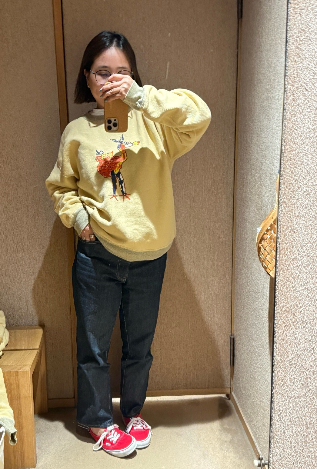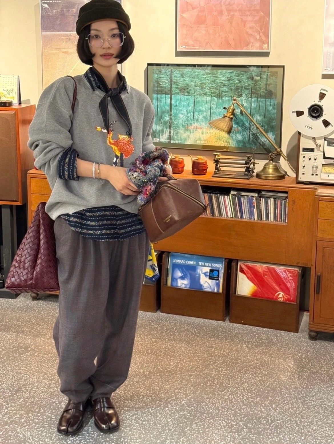 领口袖口的拼色、手工感的印花,宽松的剪裁,套上就不想脱,日常通勤、周末散步都合适