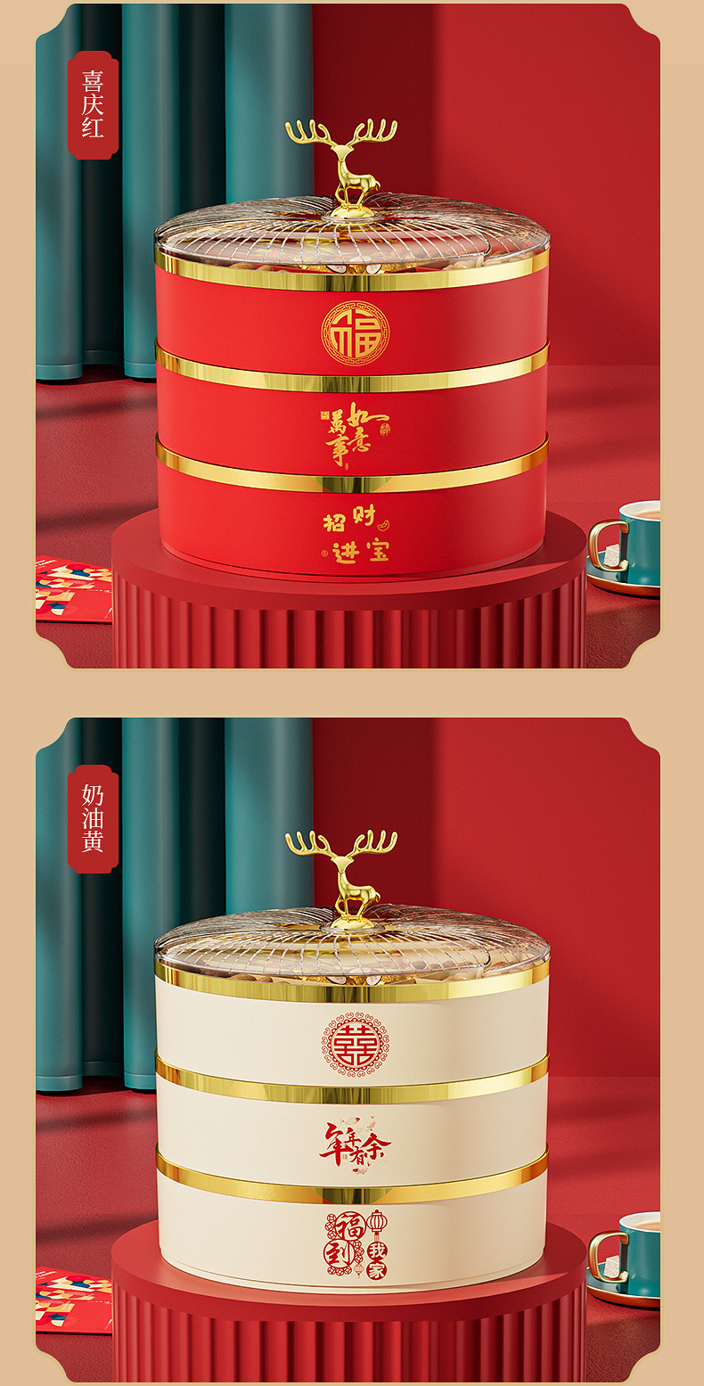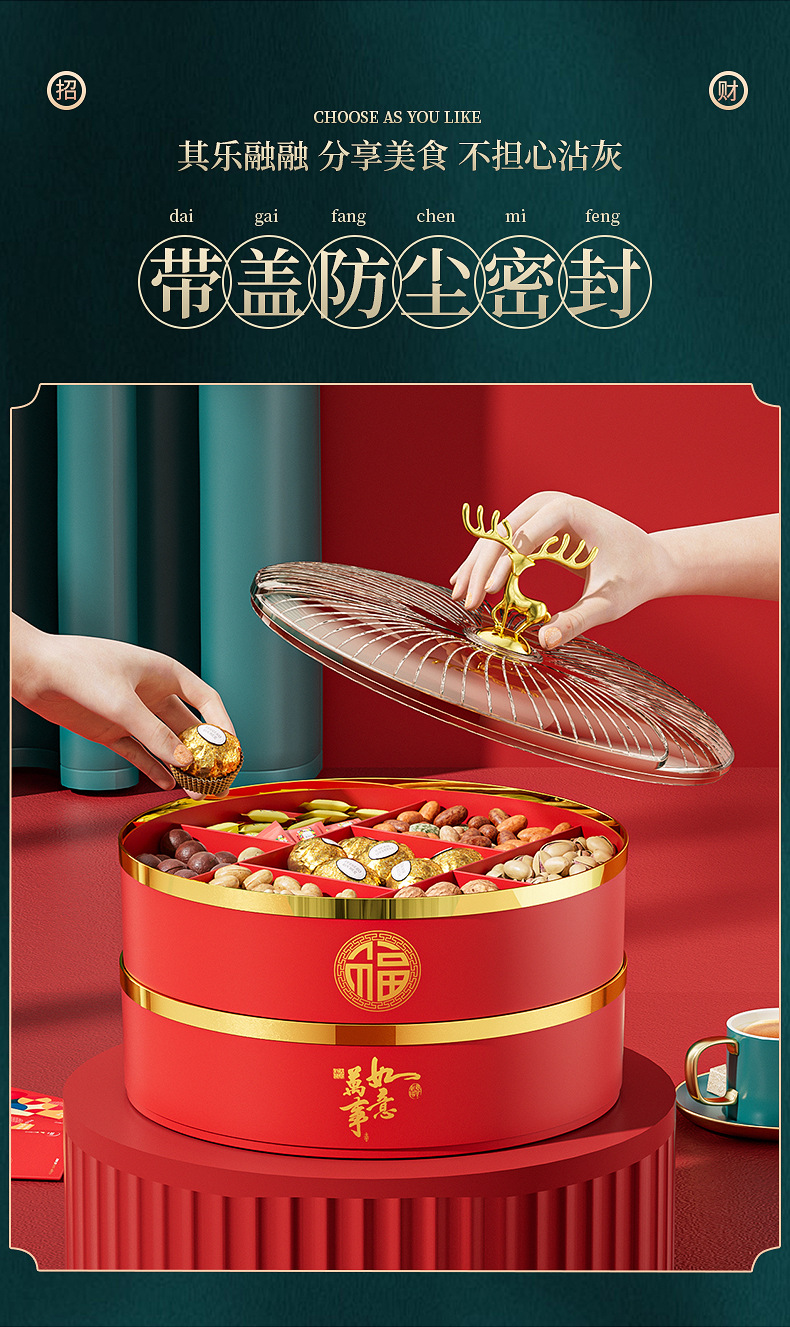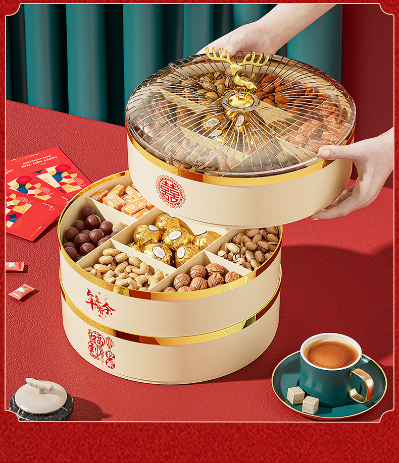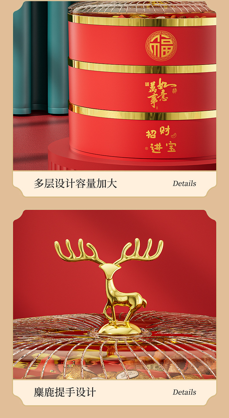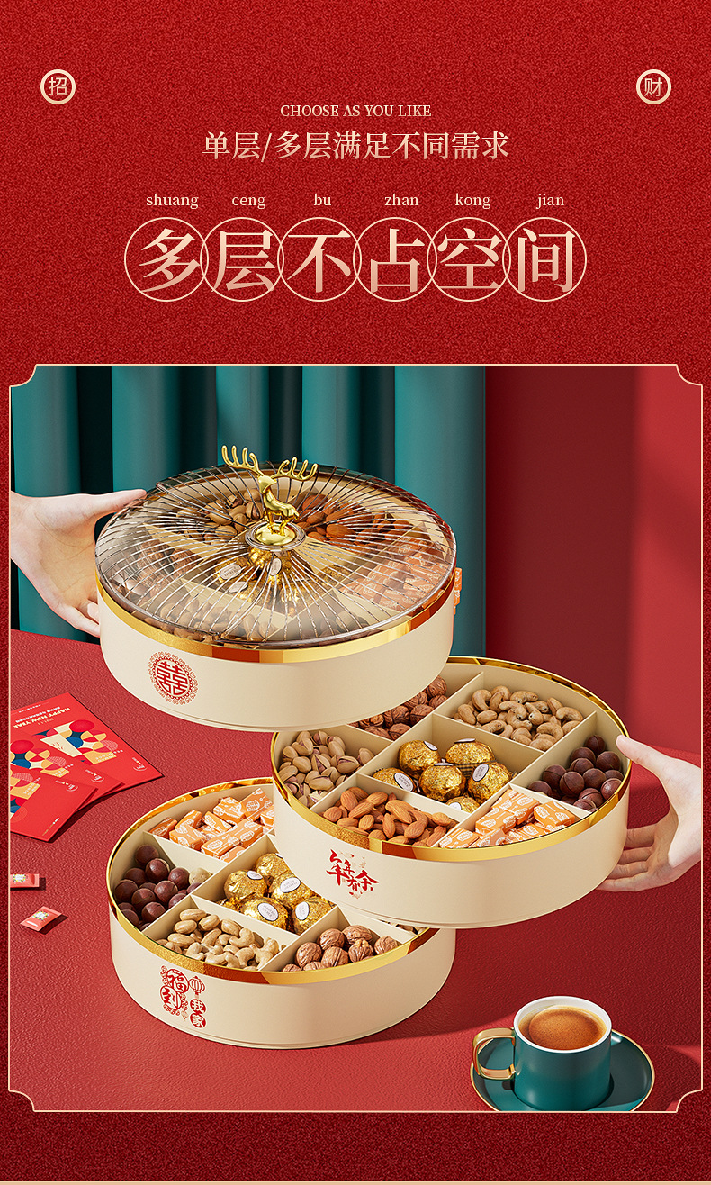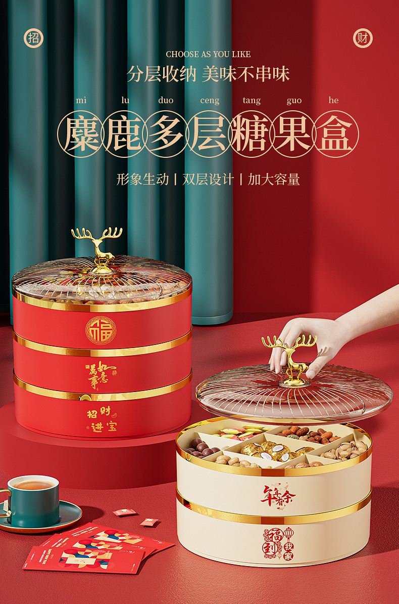 【麋鹿多层糖果盒】新年婚庆家用糖果盒分格收纳盒客厅茶几水果糖果干果果盘分格带盖。ry