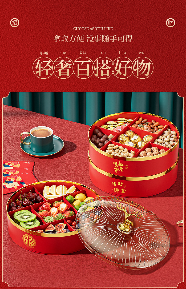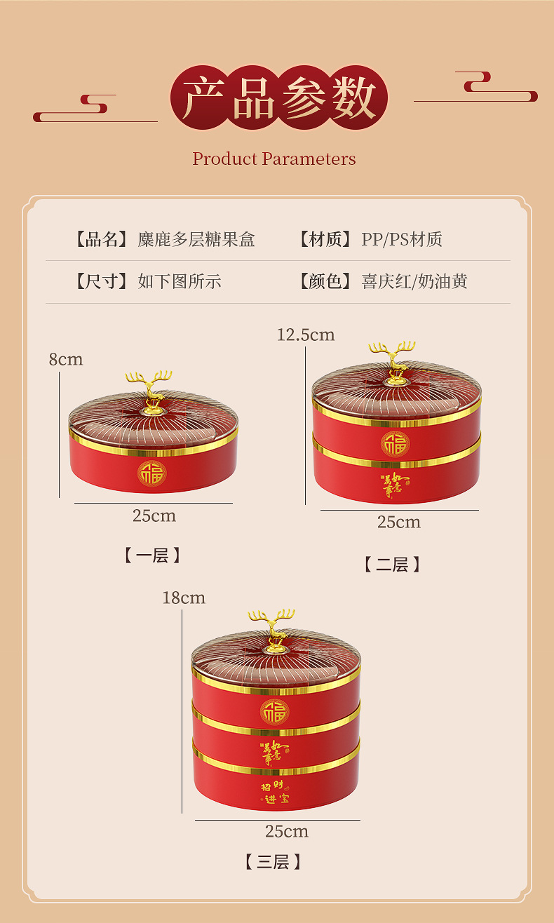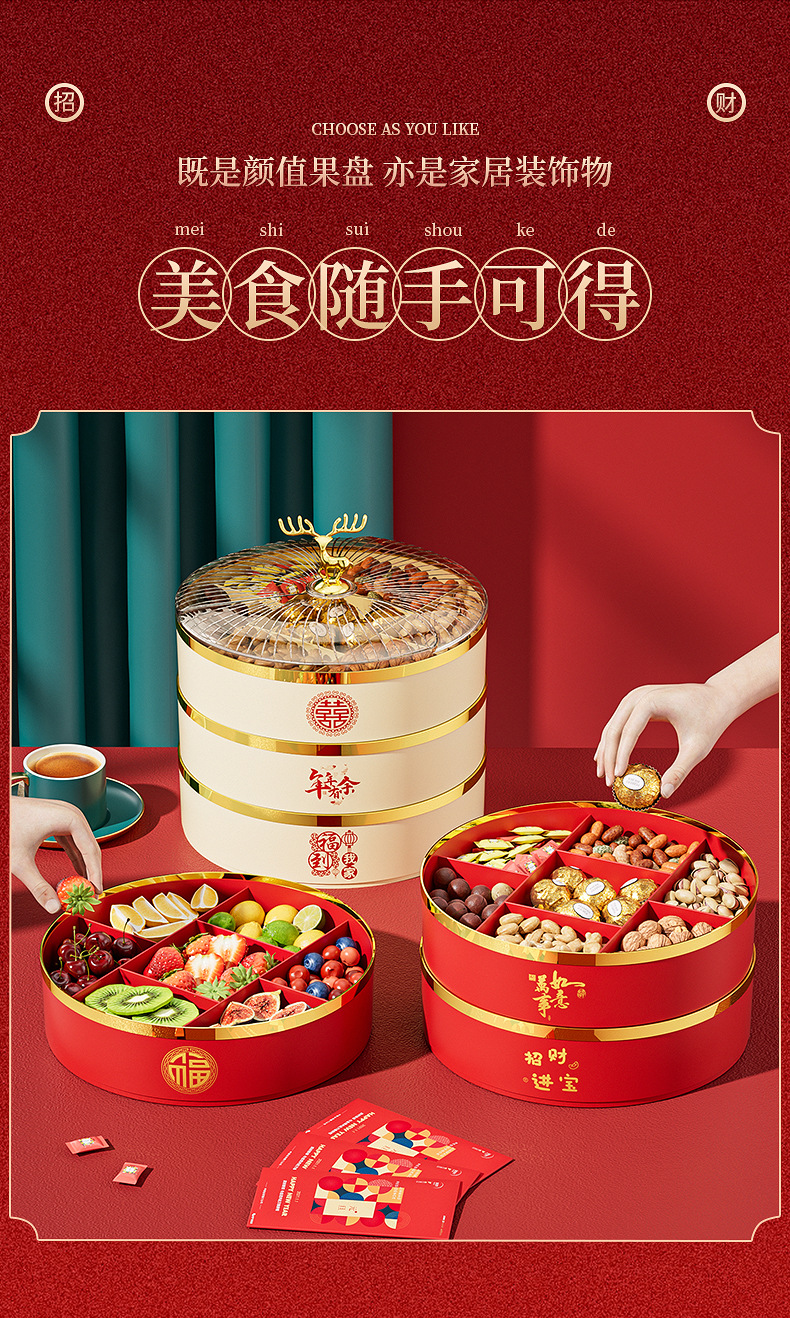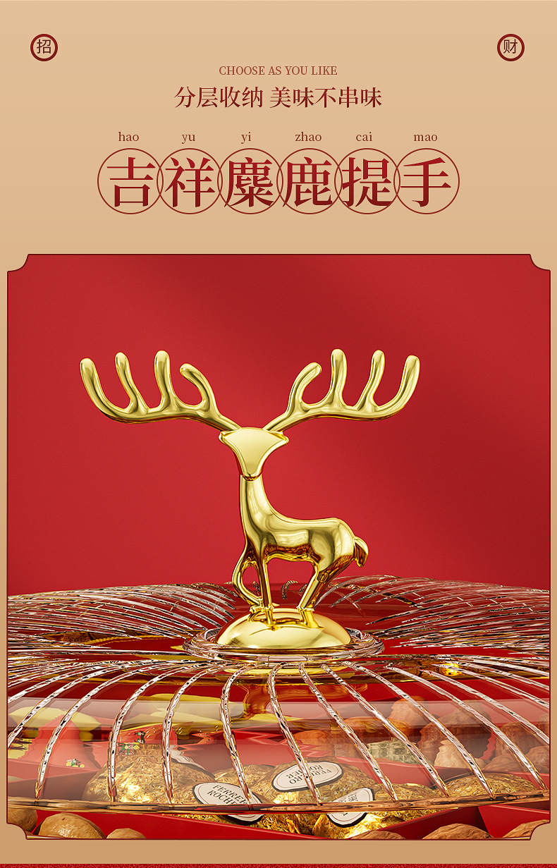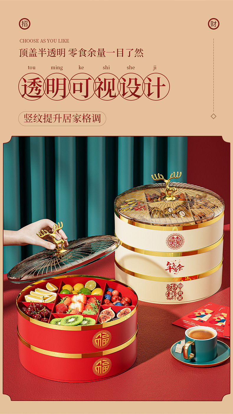 【麋鹿多层糖果盒】新年婚庆家用糖果盒分格收纳盒客厅茶几水果糖果干果果盘分格带盖。ry