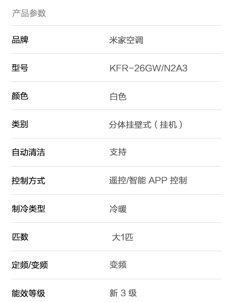 【小米热销】小米(MI)米家空调 大1匹 新能效 变频冷暖 智能自清洁 壁挂式卧室空调挂机 米家 KFR-26GW/N2A3