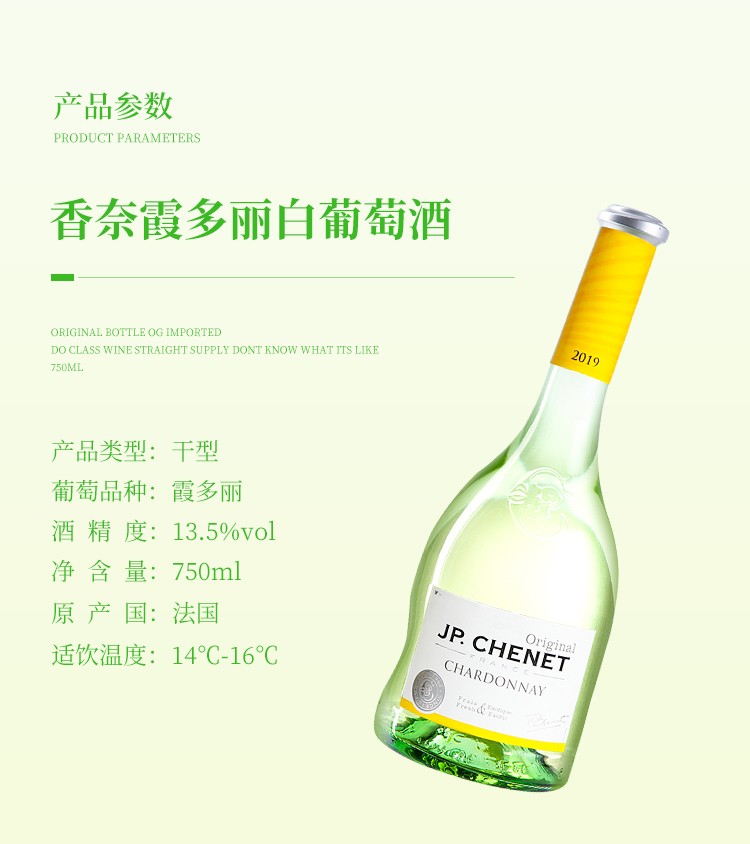 【行货】法国歪脖子香奈霞多丽干白葡萄酒 13.0%VOL