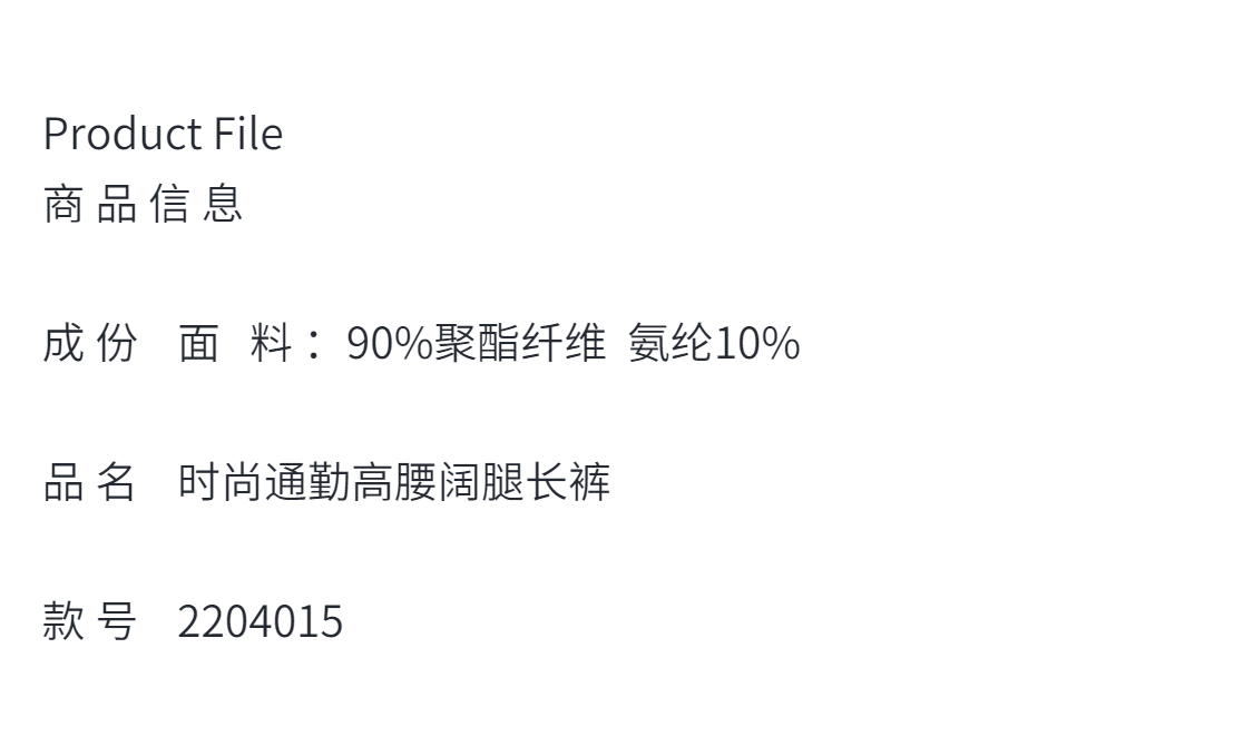 定制—时尚通勤—高腰阔腿长裤、直筒宽松垂感气质阔腿裤 2204015