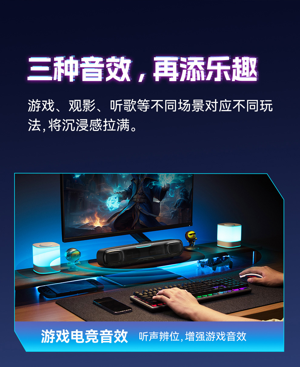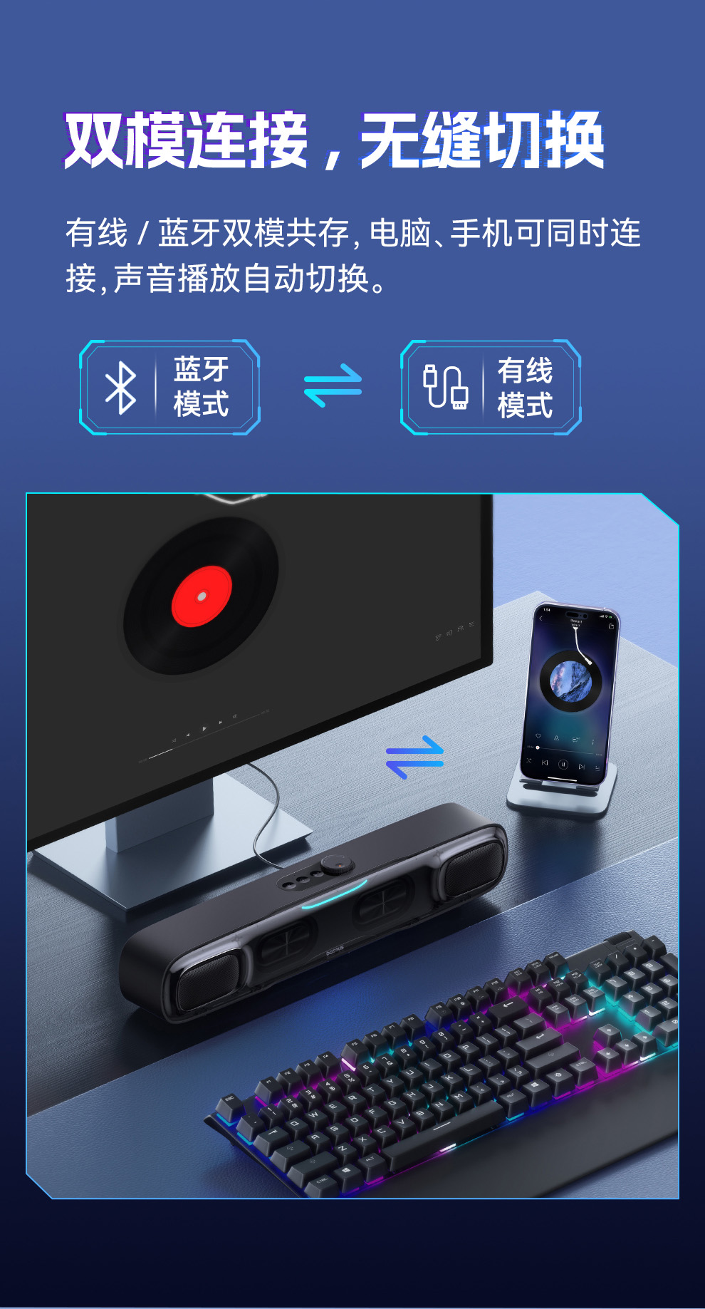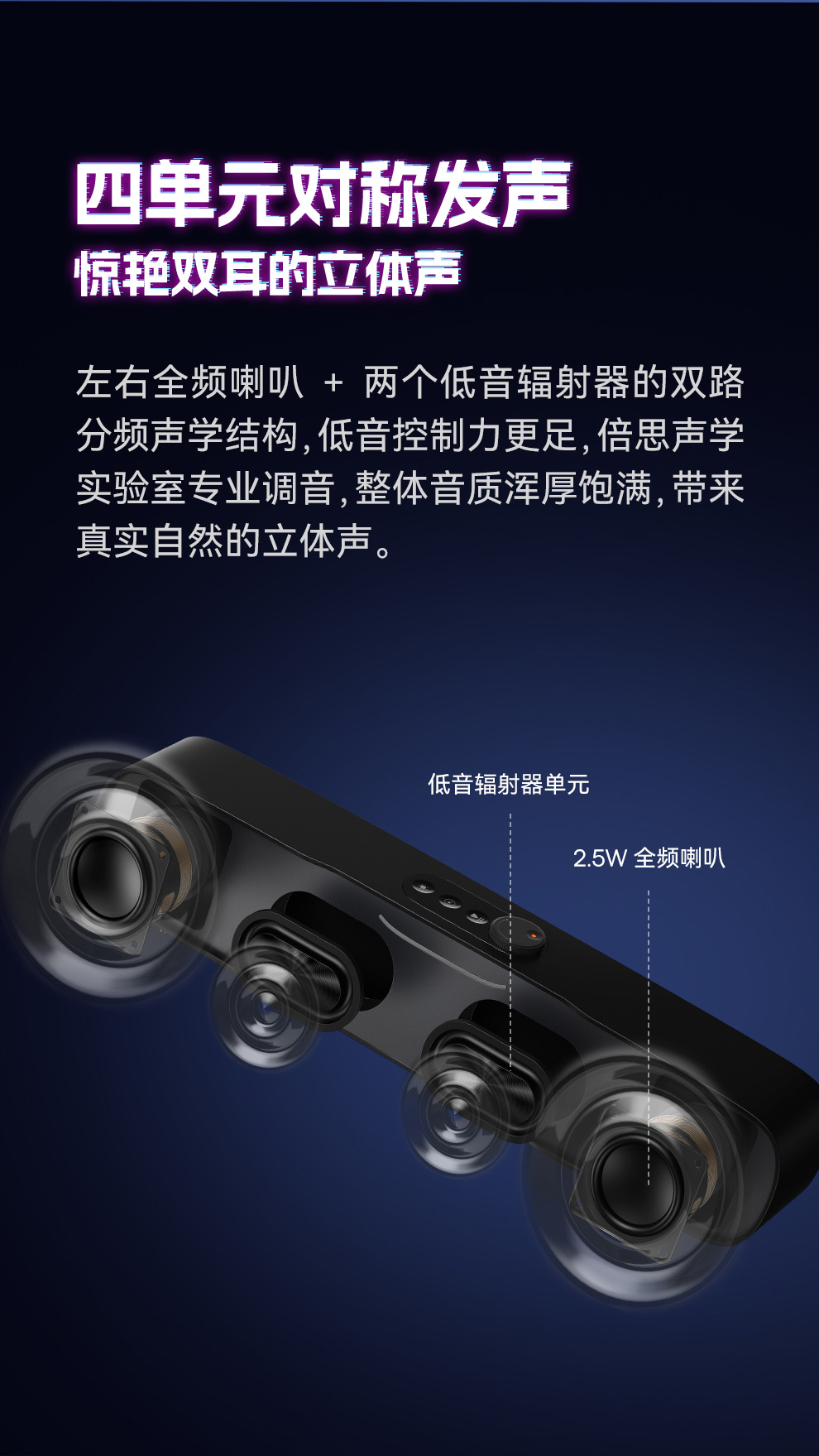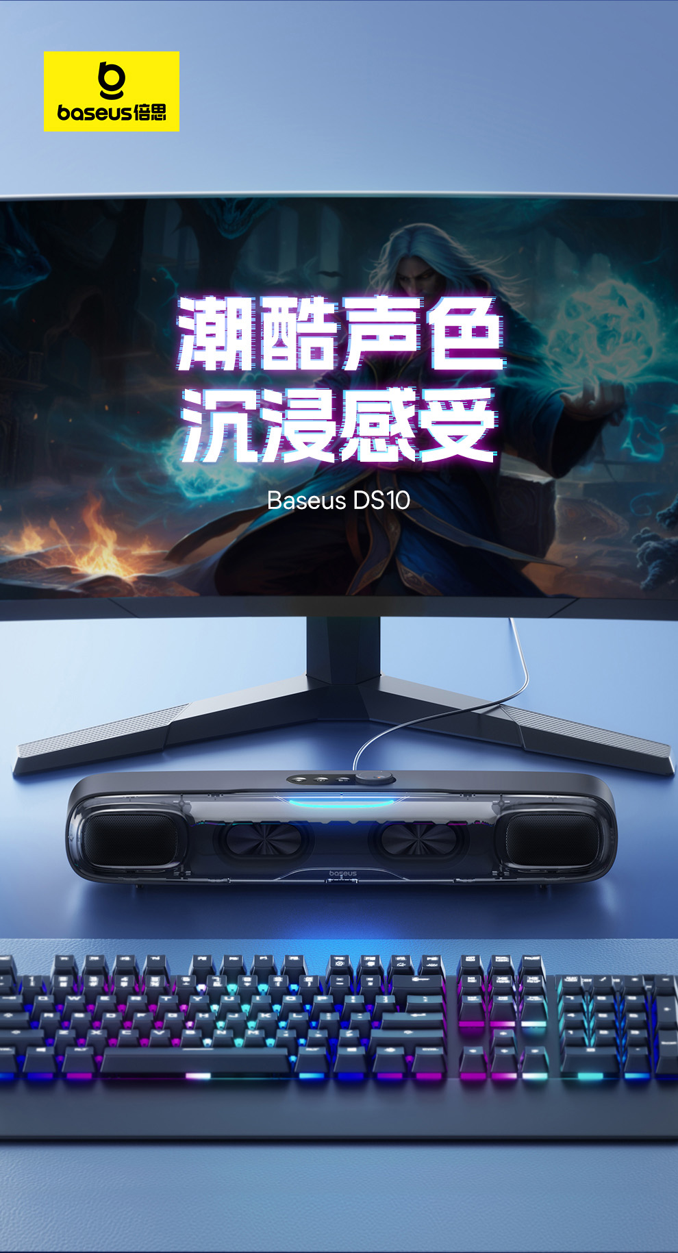 倍思 AeQur系列 DS10 桌面Mini Soundbar音箱 星曜黑
